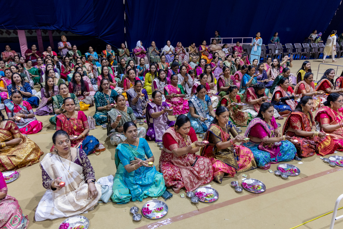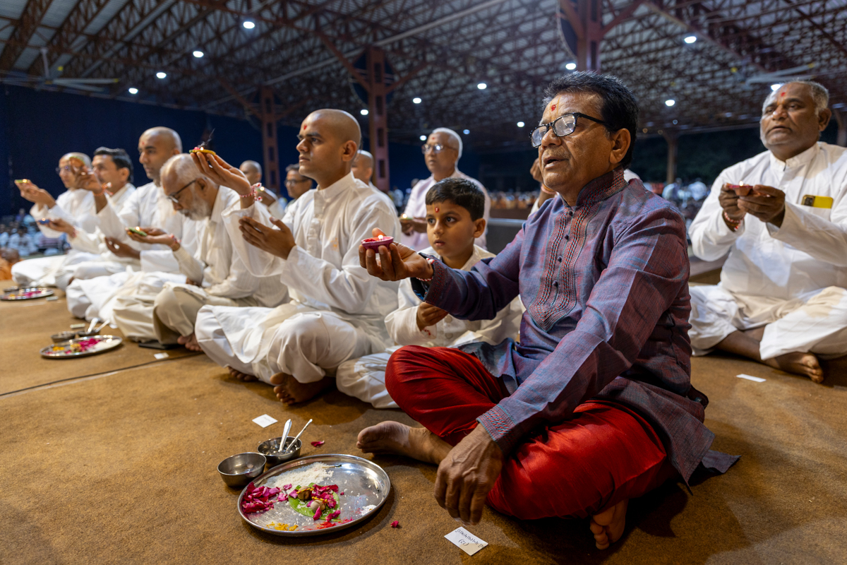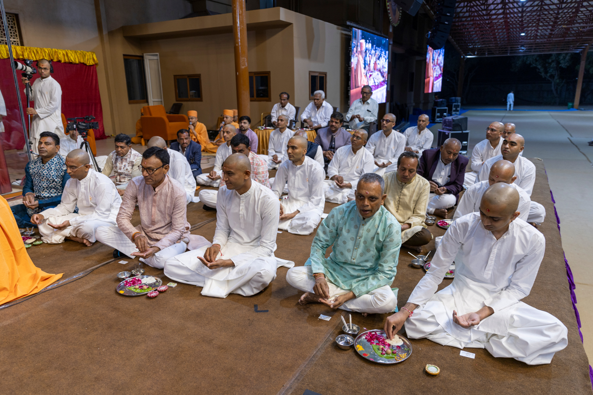 Aksharcharan Swami, sadhaks and their relatives perform the mahapuja rituals