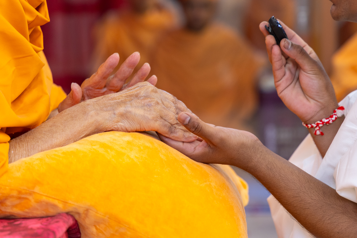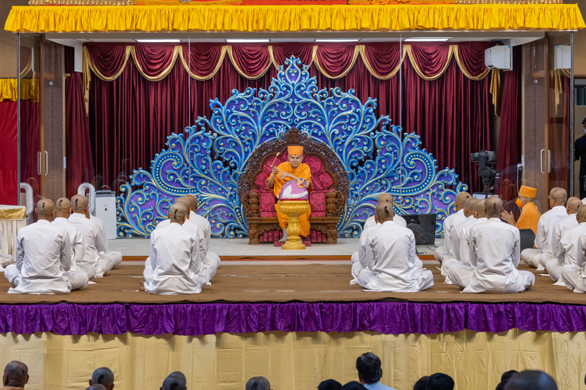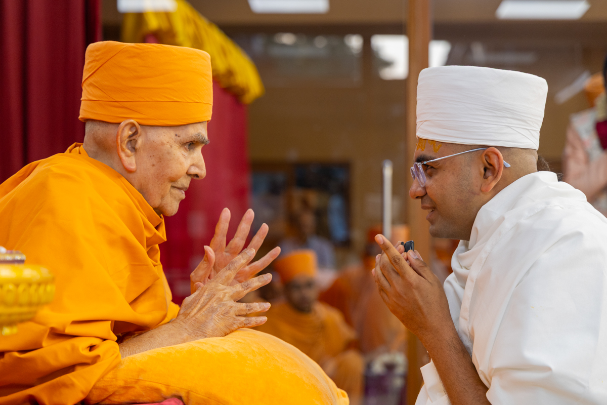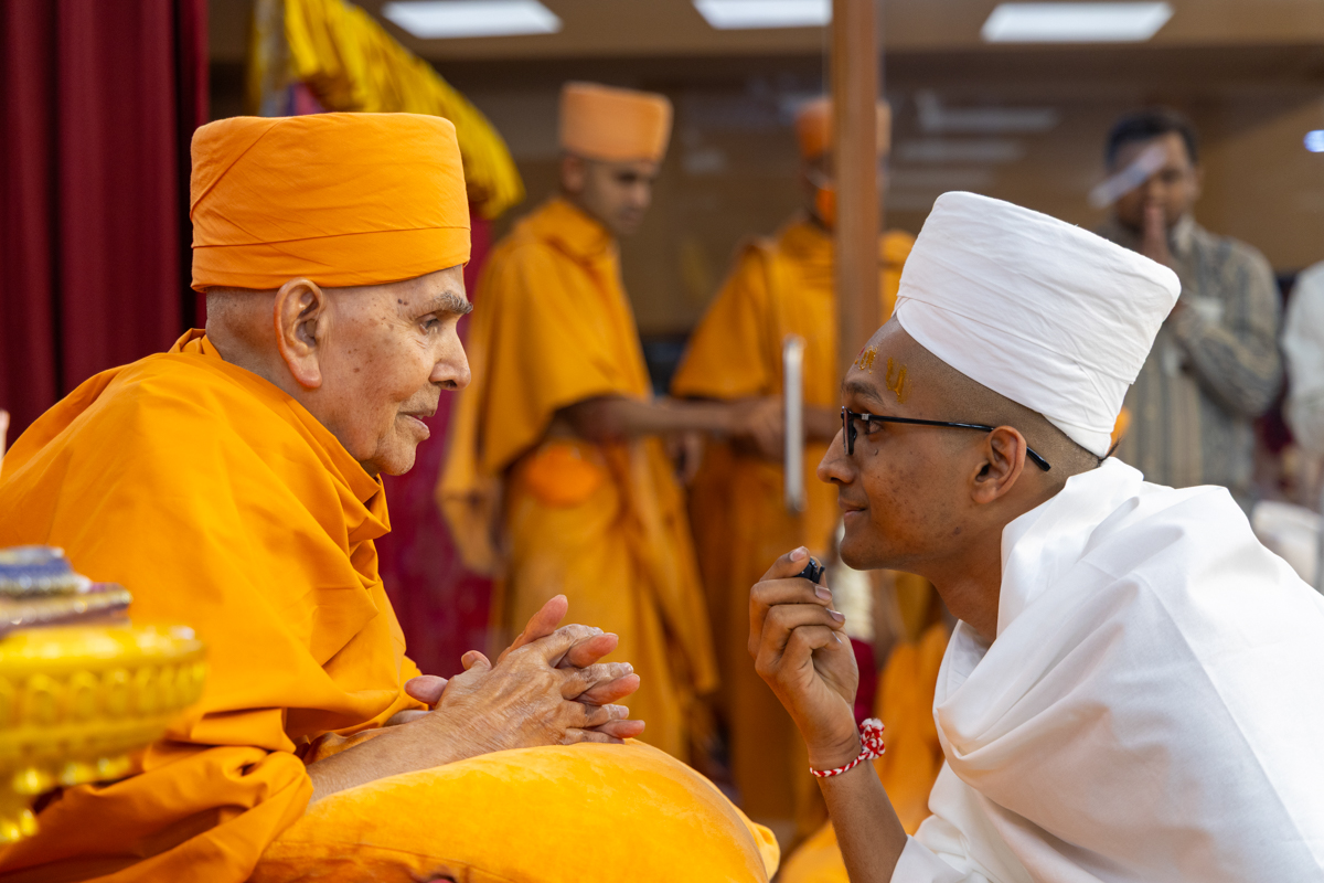 Swamishri performs the diksha rituals