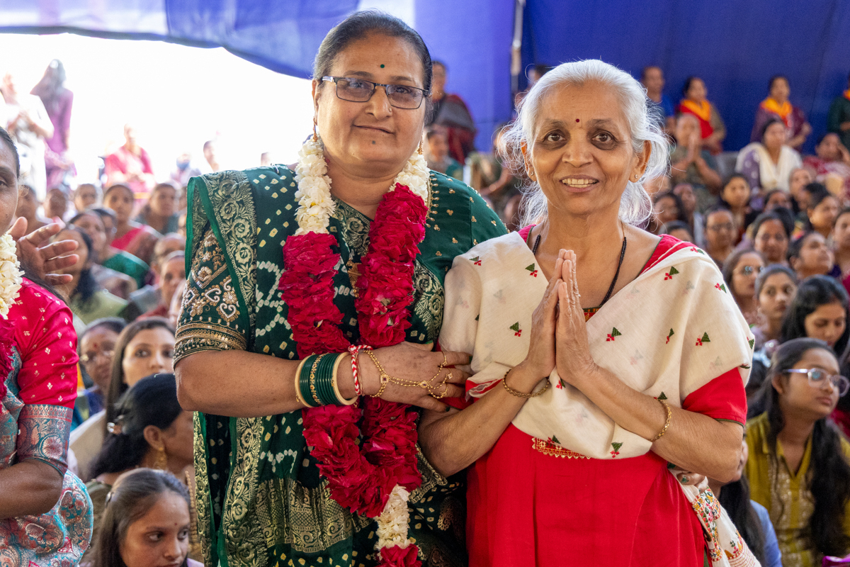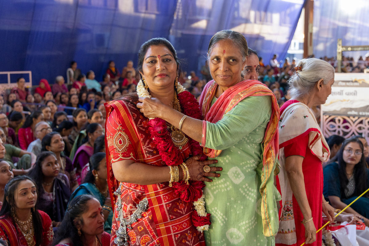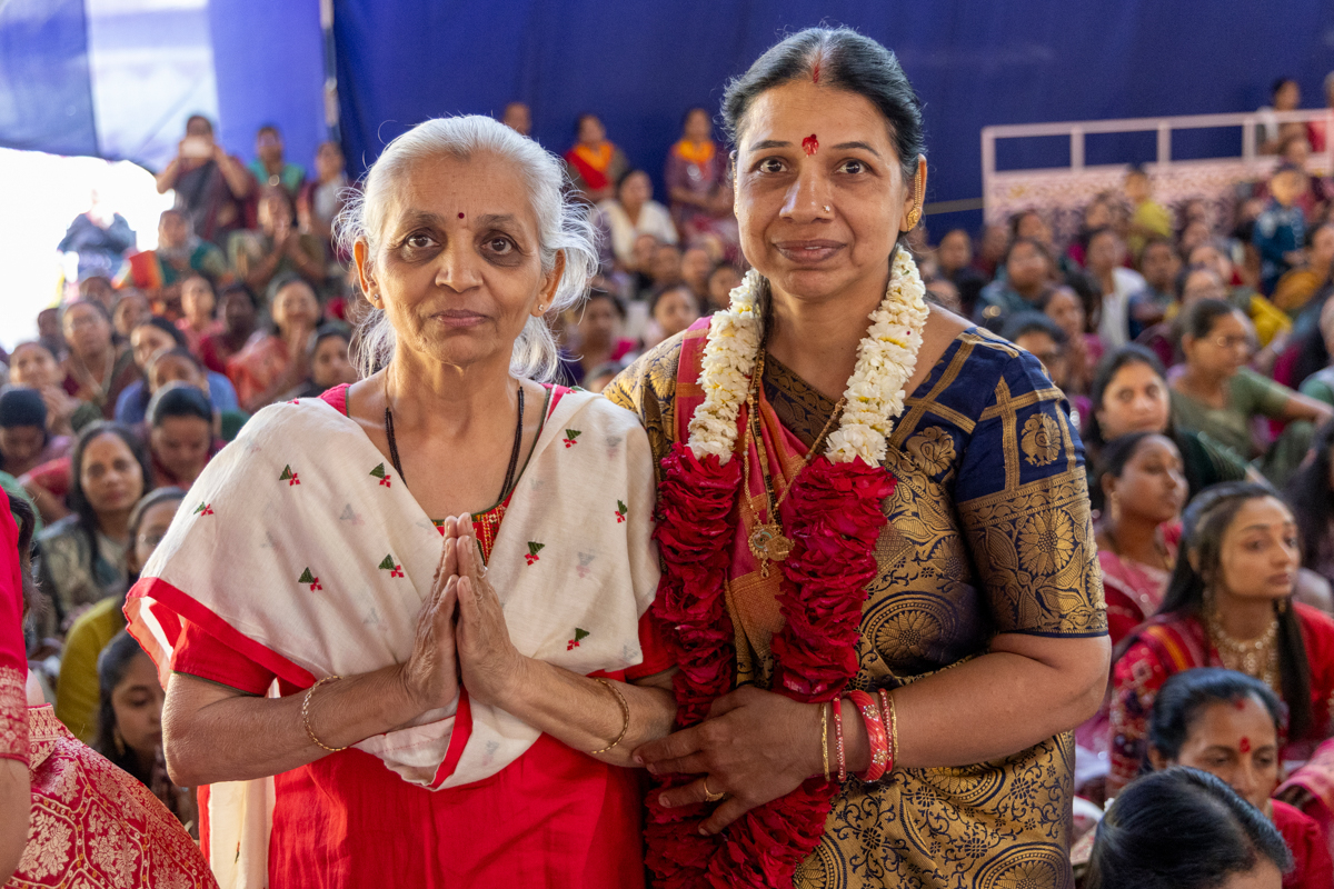 A newly initiated parshad's relatives doing darshan of Swamishri