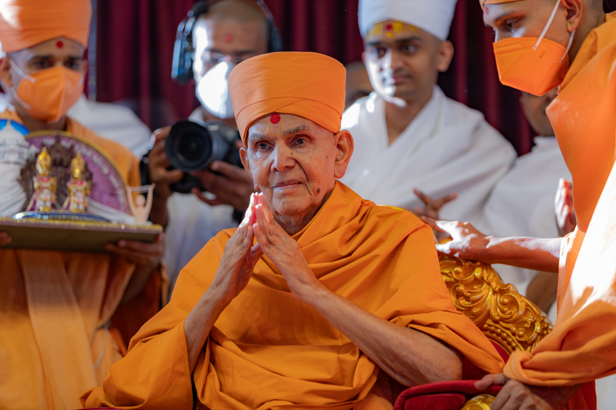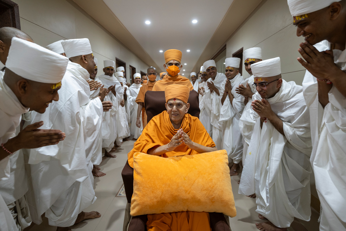 Swamishri greets all with folded hands