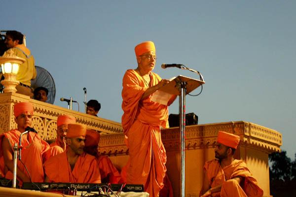 Pujya Ishwarcharan Swami delivers the vote of thanks to all who helped and sent messages of condolence