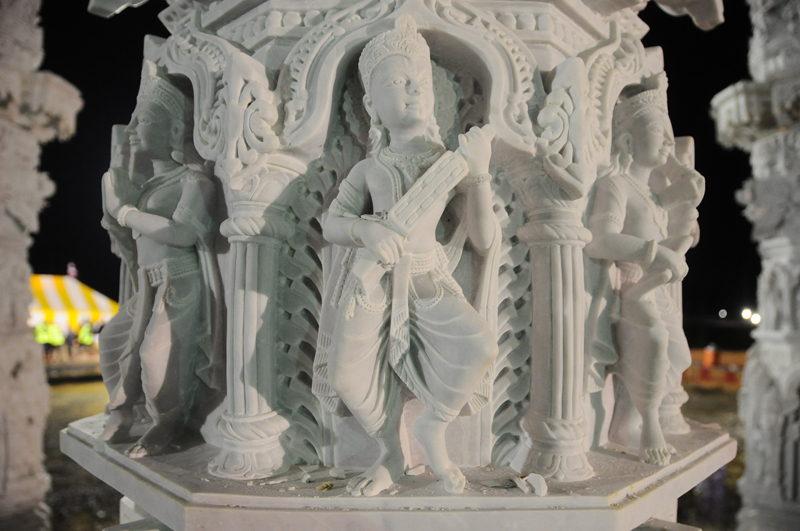 Keystone of BAPS Shri Swaminarayan Mandir, Robbinsville, NJ, USA being installed