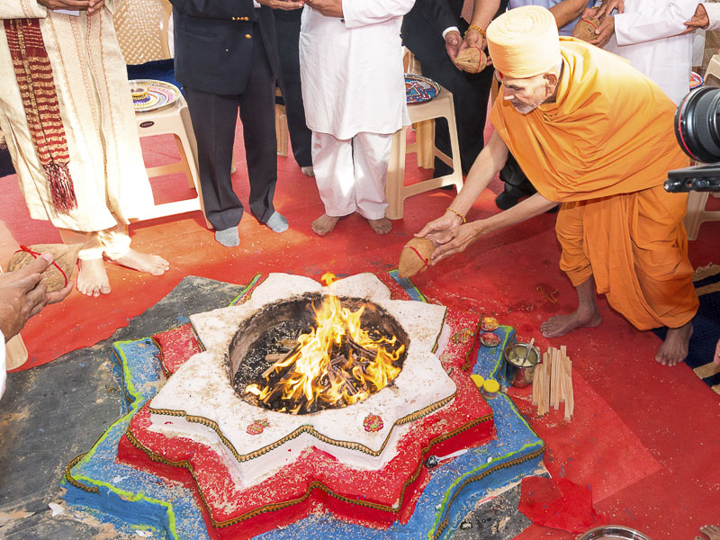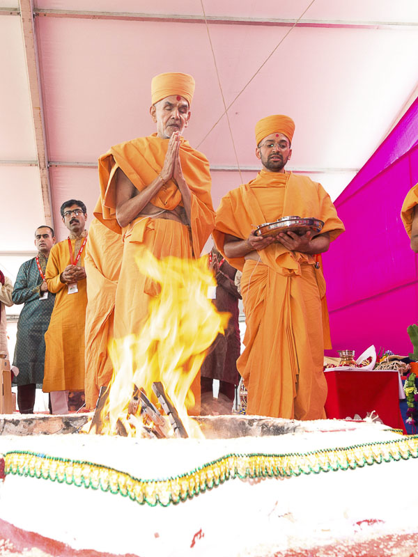 Pujya Mahant Swami and sadhus perform yagna rituals