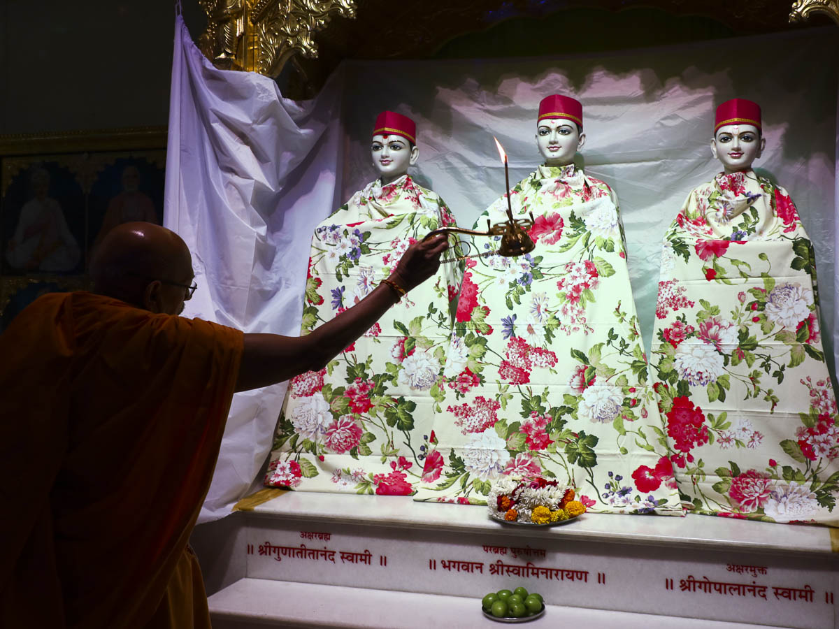 Param Pujya Mahant Swami Maharaj performs patotsav arti