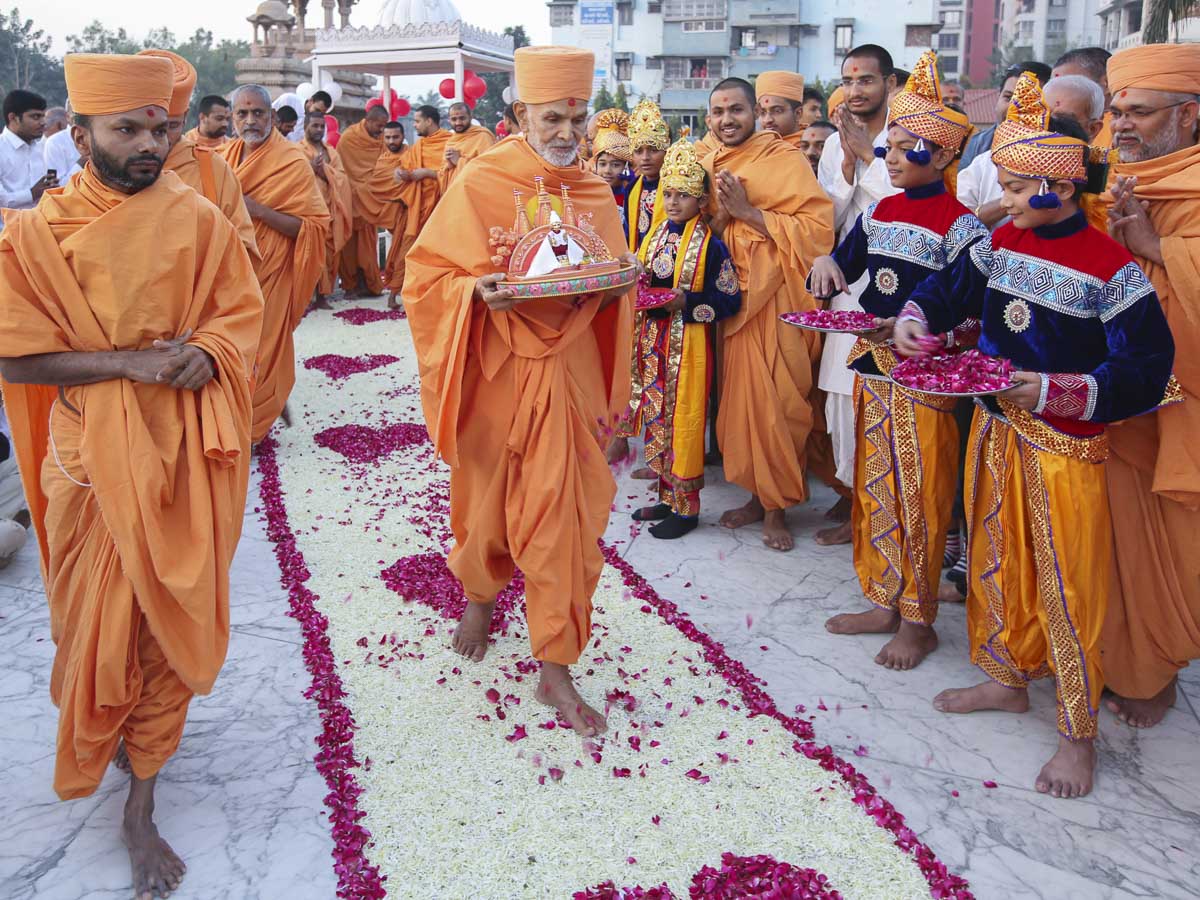 HH Mahant Swami Maharaj arrives for patotsav ceremony