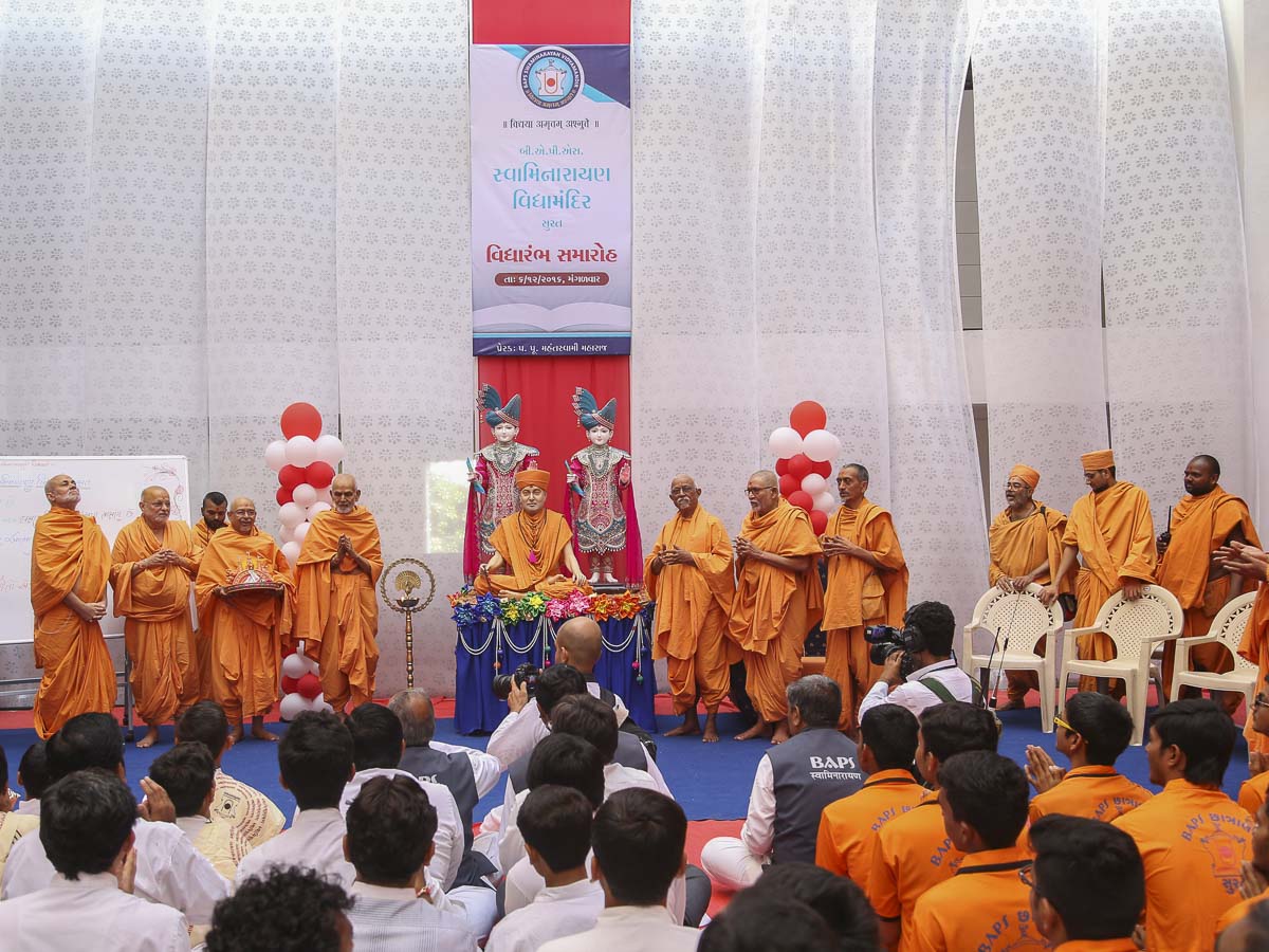 Param Pujya Mahant Swami Maharaj performs opening ceremony of Swaminarayan Vidyamandir
