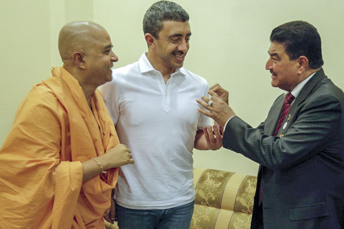 Brahmaviharidas Swami welcomes His Highness Sheikh Abdullah bin Zayed Al Nahyan