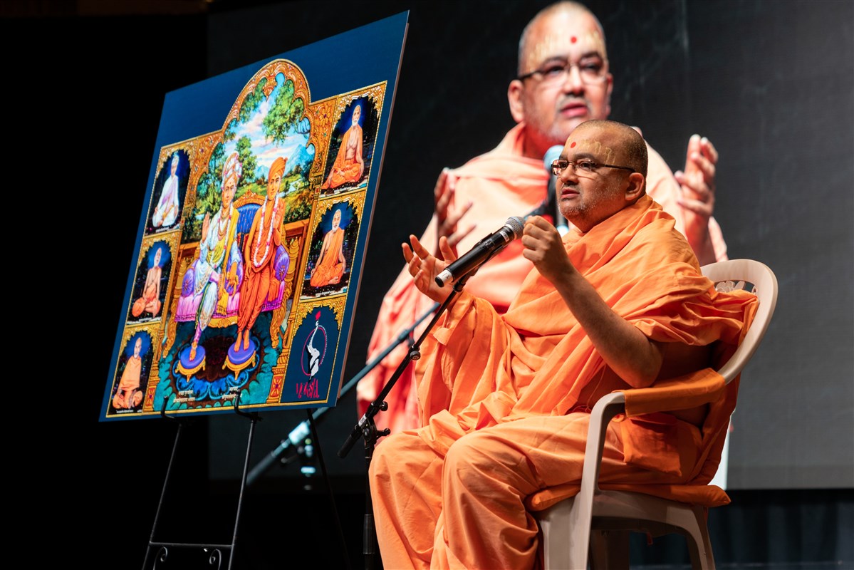 Pujya Bhadreshdas Swami addresses volunteers during the orientation session