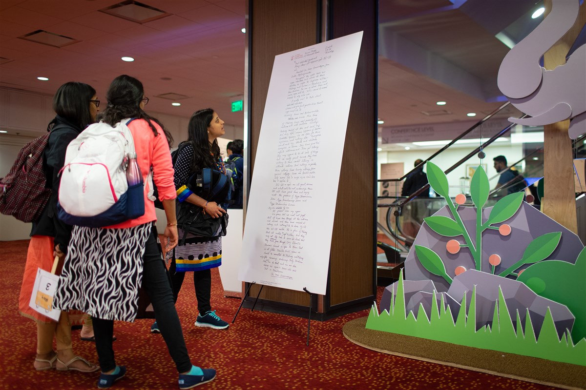 Delegates read a unique letter written by Param Pujya Mahant Swami Maharaj to all NAYC18 attendees