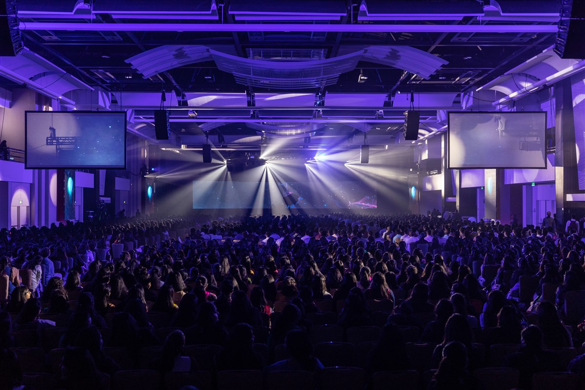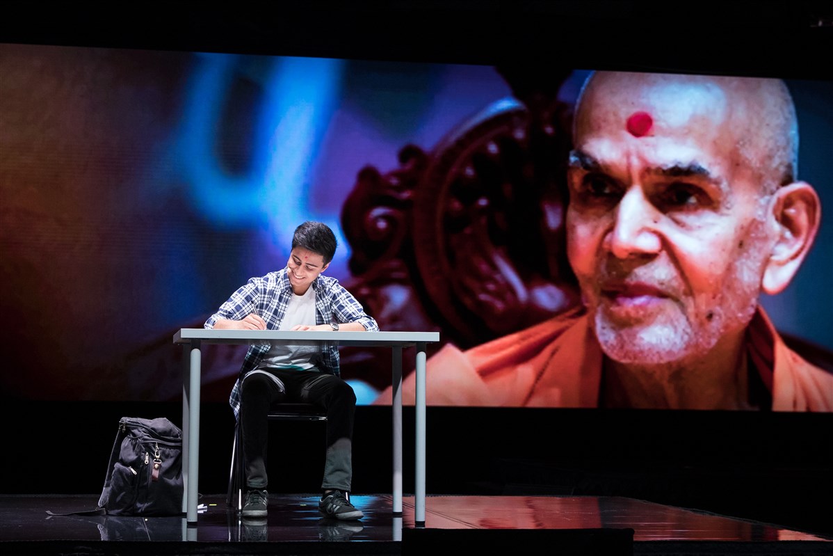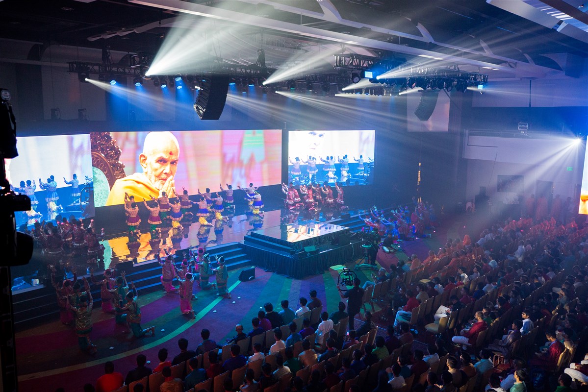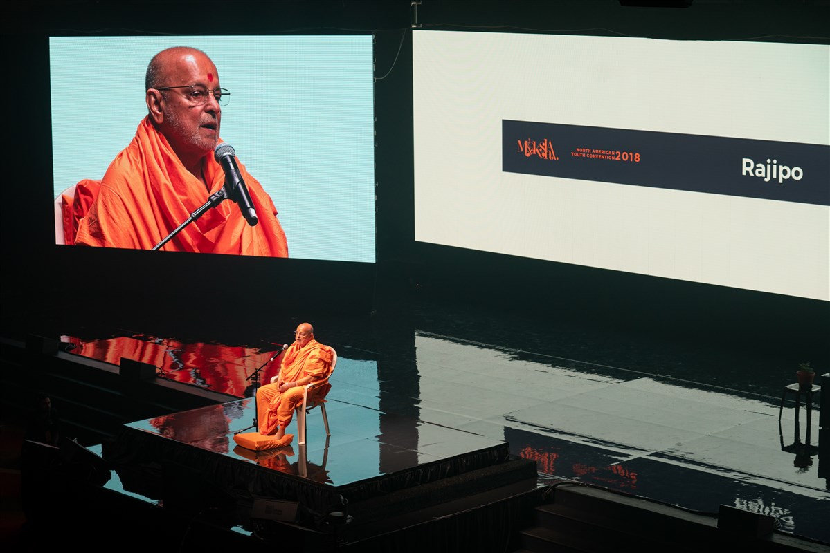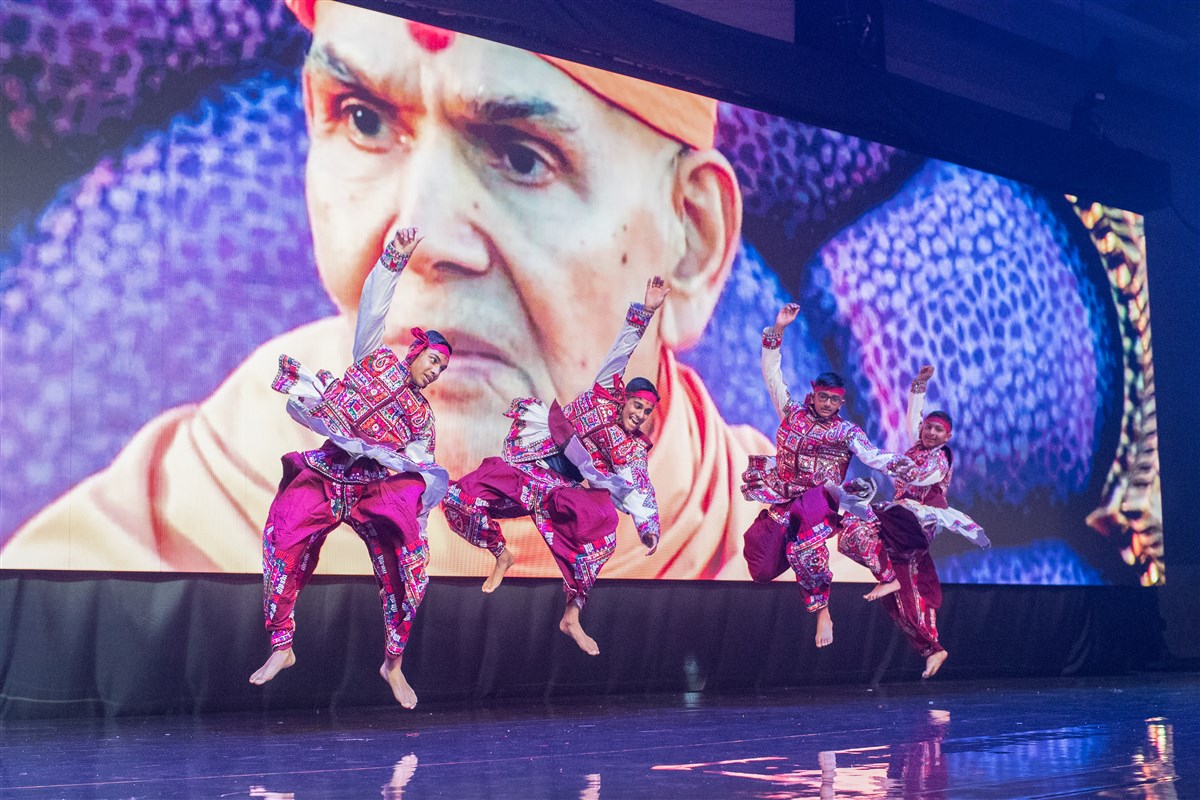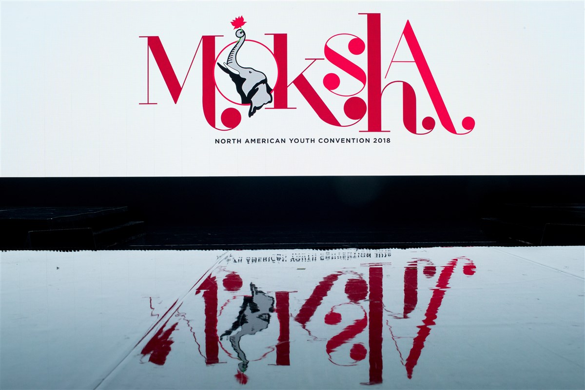 The official logo of the BAPS North American Youth Convention 2018 displayed on stage