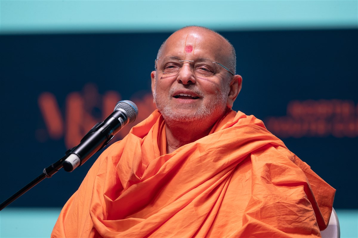 Pujya Anantmangaldas Swami addresses the morning assembly