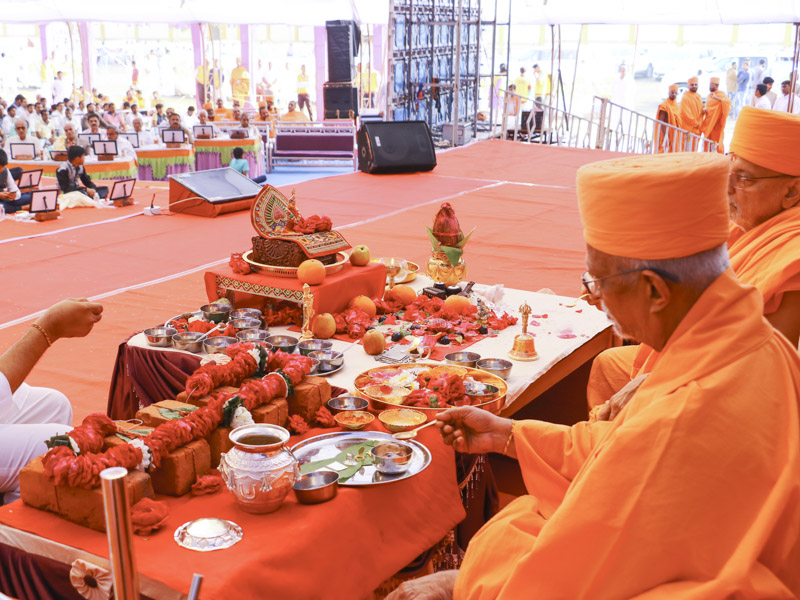 Pujya Doctor Swami and Shri Kumarbhai Pujara perform mahapuja rituals
