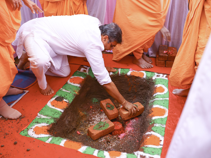 Pujya Ishwarcharan Swami performs ground-breaking ceremony
