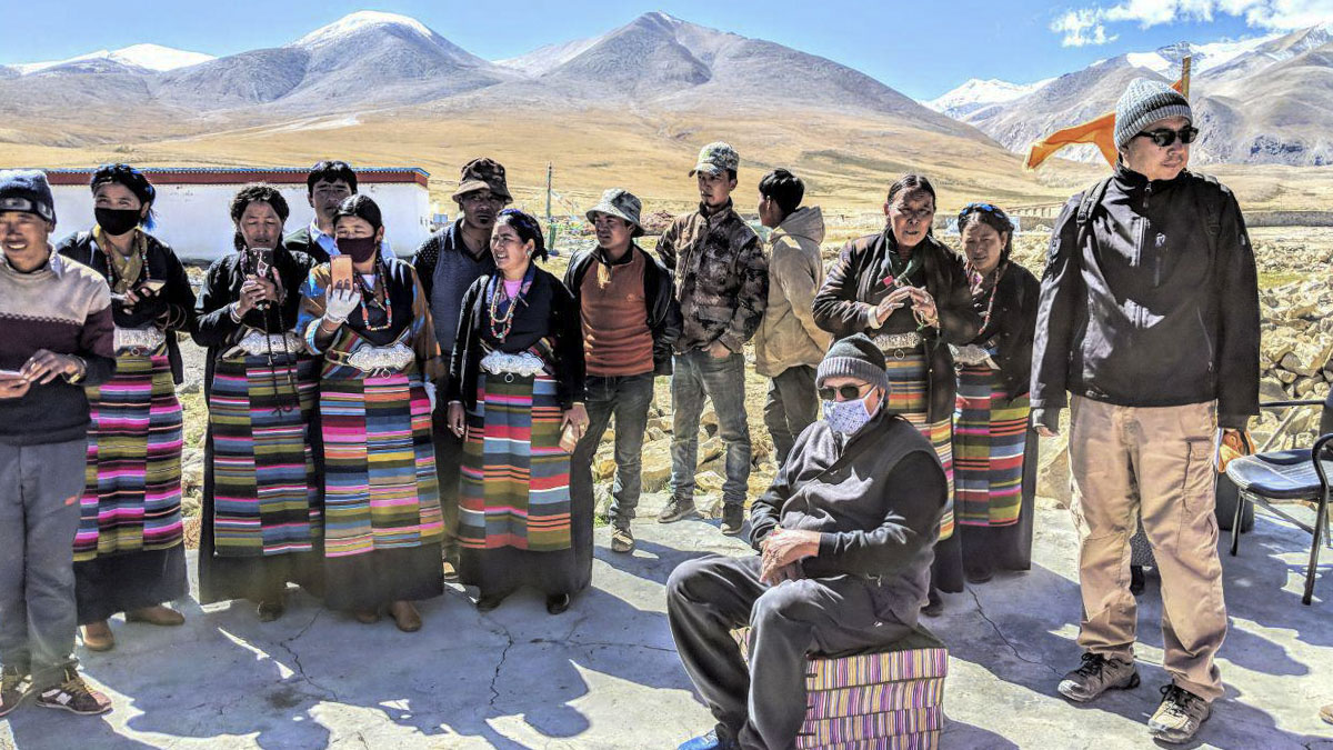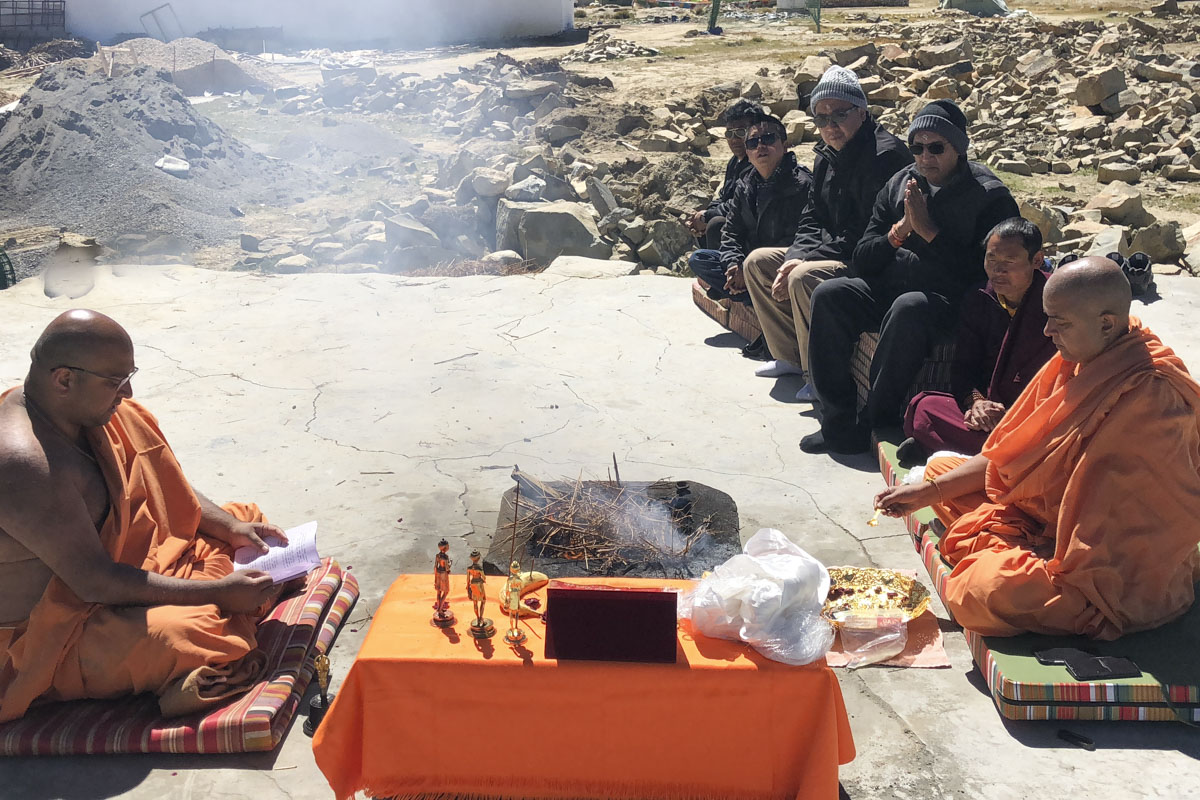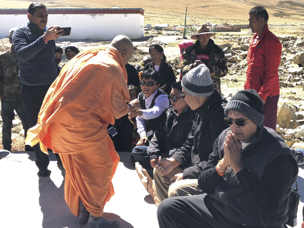 Pujya Ishwarcharan Swami and sadhus perform asthipushpa visarjan rituals in Lake Mansarovar, 13 June 2017