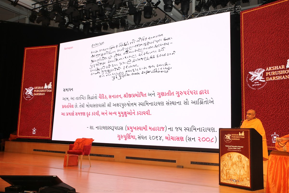 Yogvivek Swami explains Pramukh Swami Maharaj's handwritten letter summarising Akshar-Purushottam Darshan