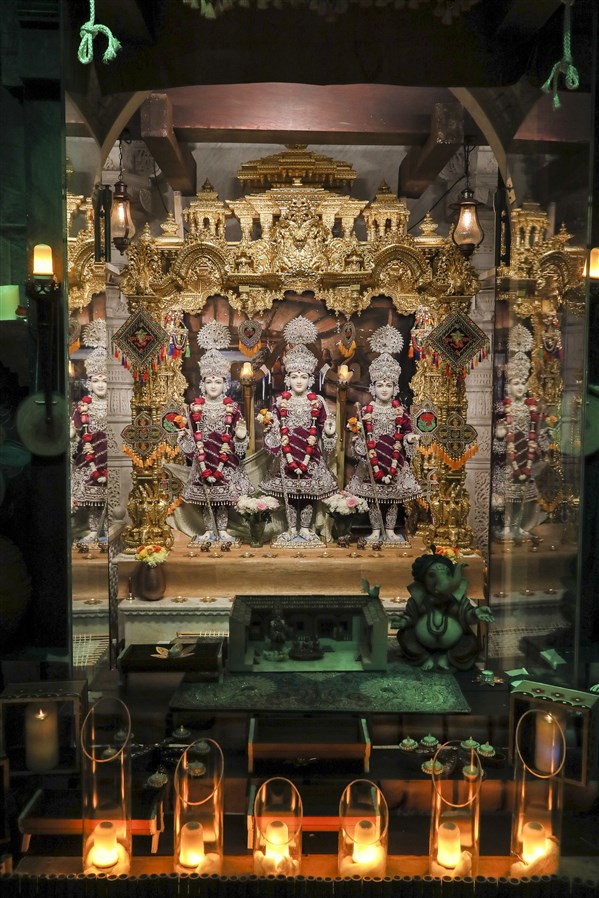 Parabrahma Purushottam Bhagwan Swaminarayan, Aksharbrahma Gunatitanand Swami, and Aksharmukta Gopalanand Swami