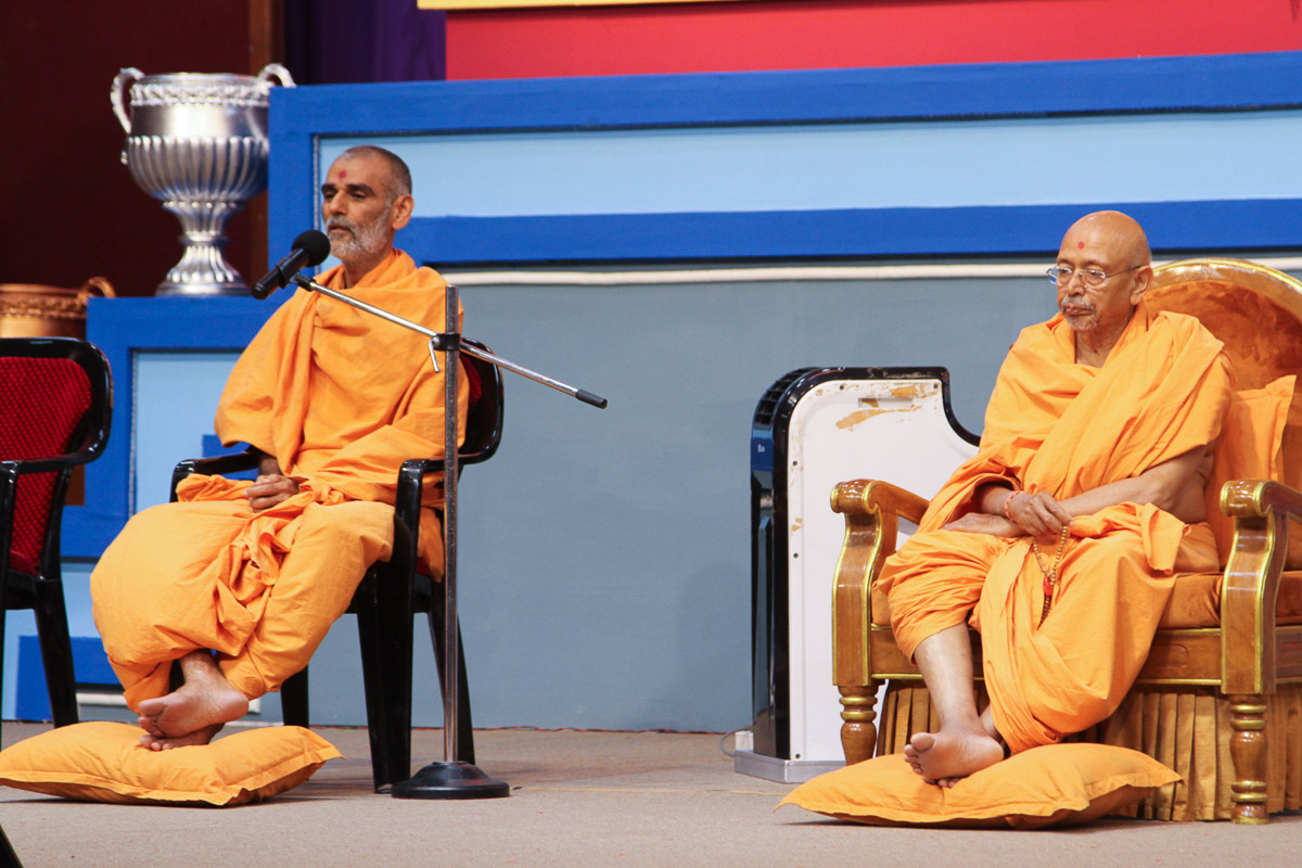 Vivekmuni Swami addresses the evening adhiveshan prize ceremony