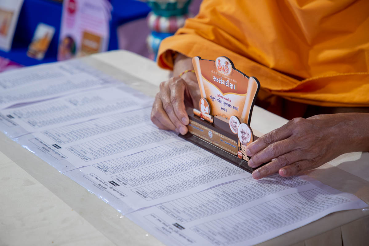 Swamishri showers flower petals to honour all the youths in appreciation for their sincere efforts