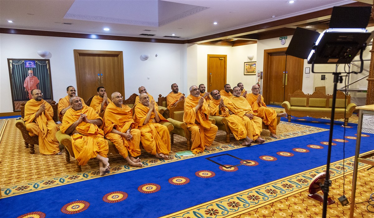 During the course of the afternoon and evening, thousands of devotees from all over the UK and Europe were able to meet the swamis online