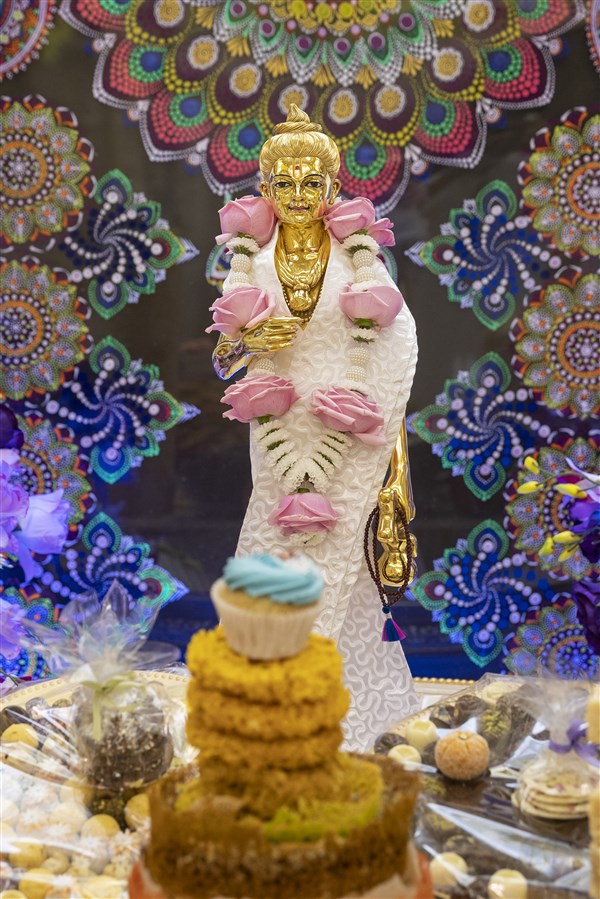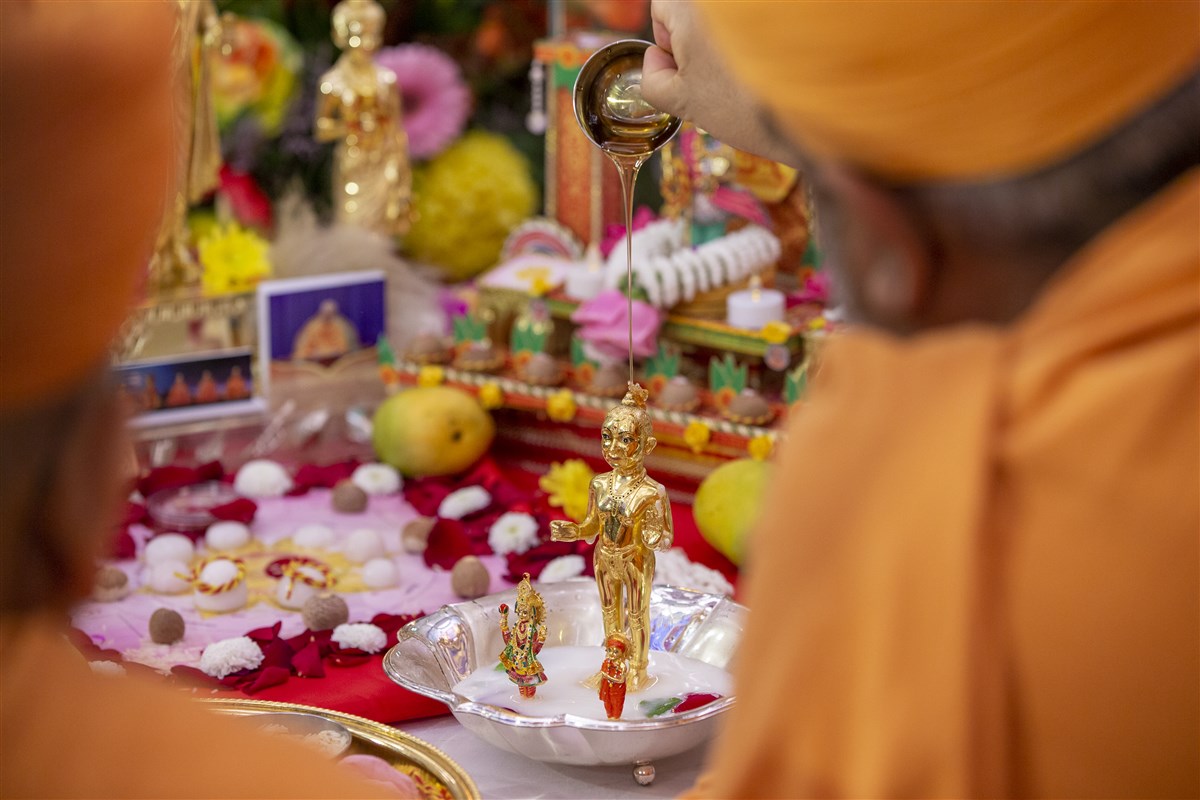 The murti was bathed, in turn, with Panchamrut, the five holy ingredients (milk, yoghurt, ghee, honey and sugar)