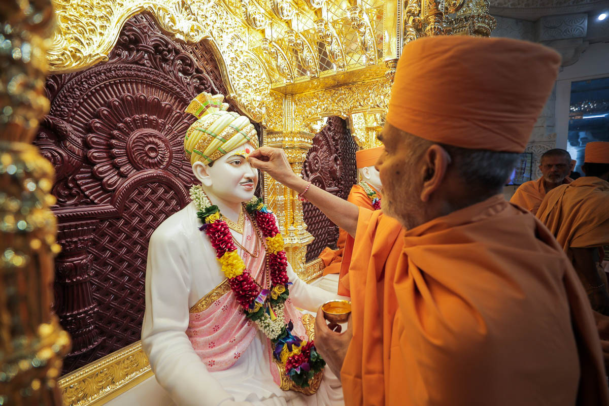 Pujya Ghanshyamcharan Swami performs 'Snapan' (snan) vidhi of murti