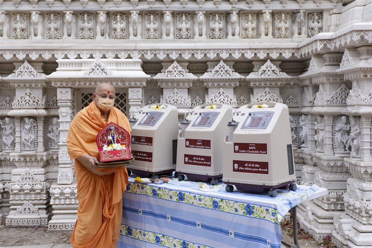 Oxygen concentrators arrived at BAPS Shri Swaminarayan Mandir, Ahmedabad