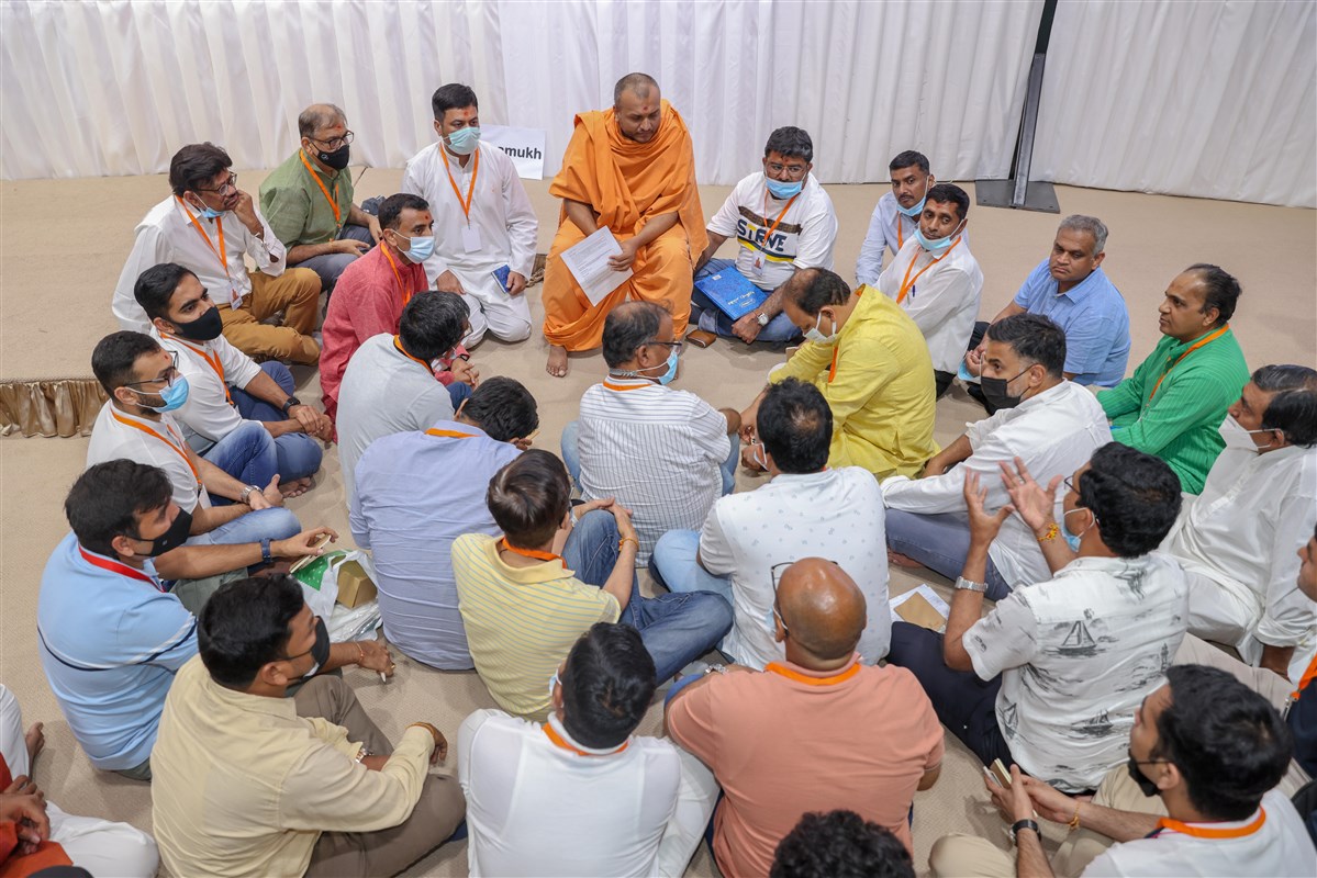 Groups discussions were an effective way to explore the practical application of Swamishri's virtues and values