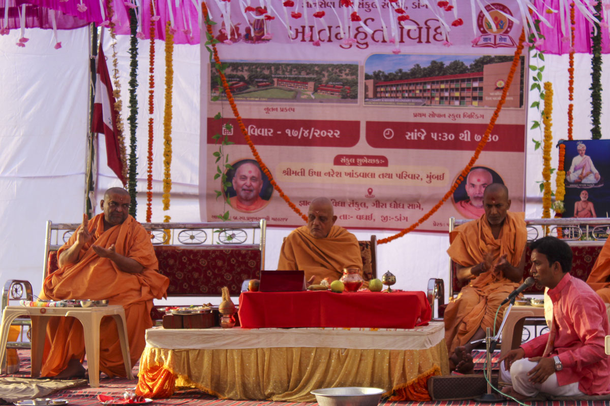 Param Pujya Mahant Swami Maharaj performs pujan of bricks, 16 Apr 2022, Kanad (Surat)