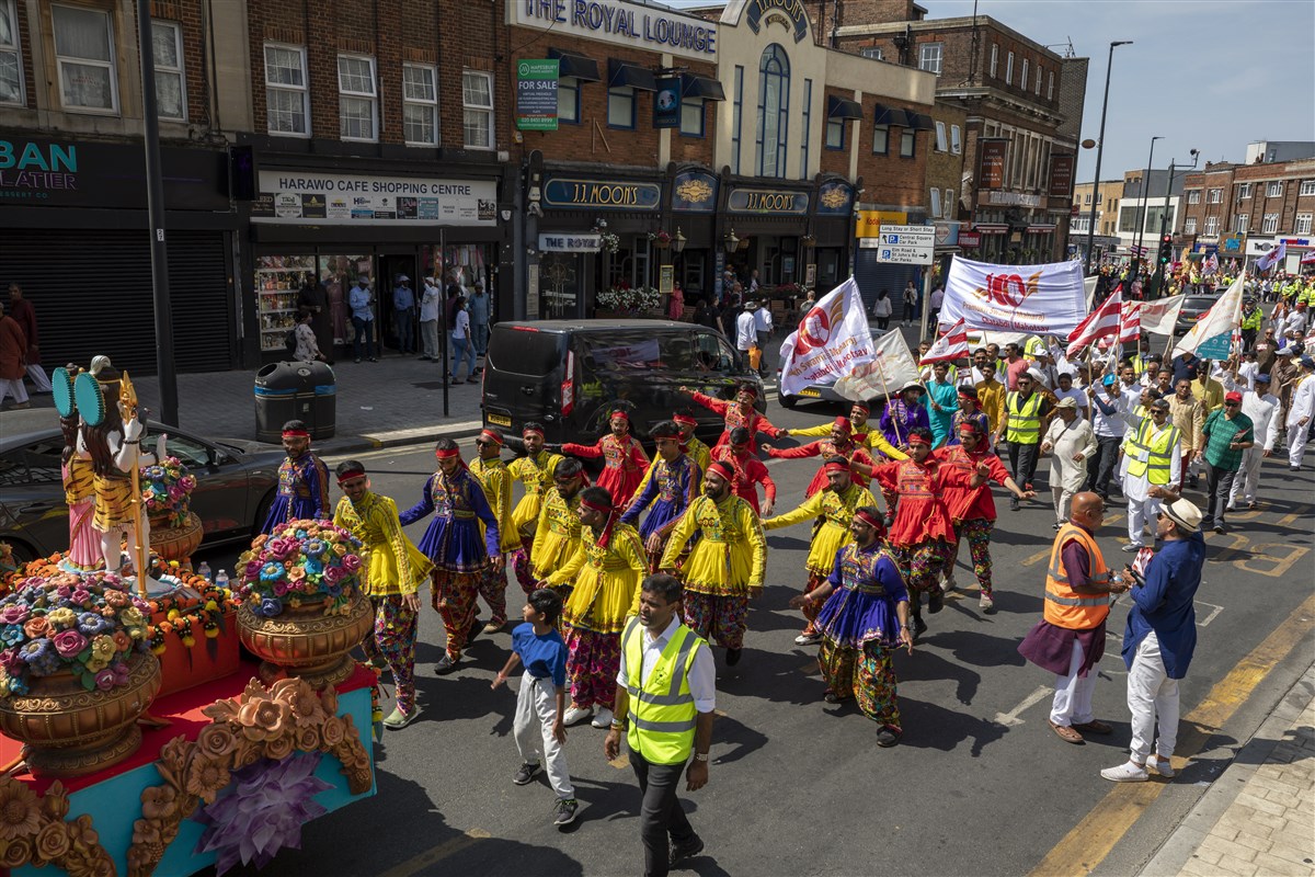 The approximately 3-mile procession continued along the heart of the London Borough of Brent