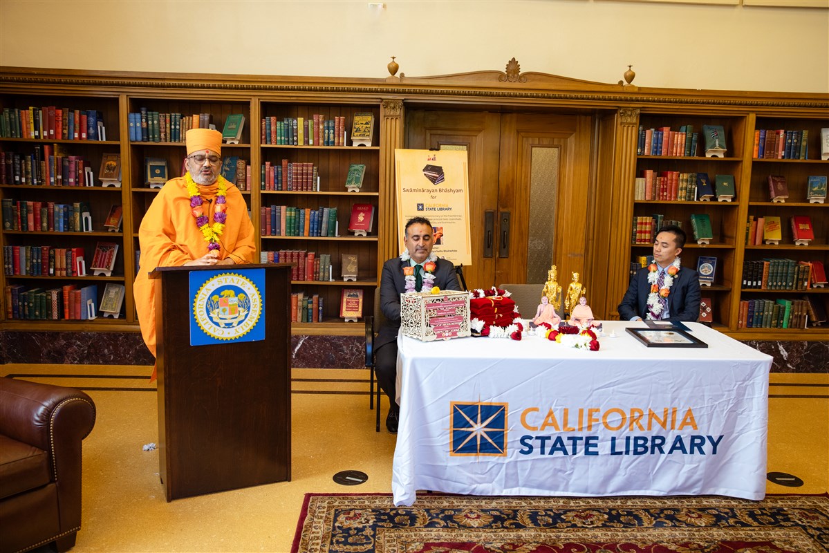 Felicitation of Mahamahopadhyay Bhadreshdas Swami and Presentation of Sanskrit Scriptures at the California State Assembly and Library, San Jose, CA, USA