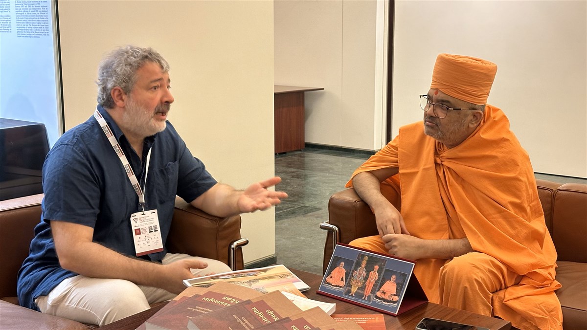 Mahamahopadhyaya Bhadreshdas Swami met with Professor Luca Scarantino, President of the International Federation of Philosophical Societies (FISP) and host of the 25th World Congress of Philosophy in Rome