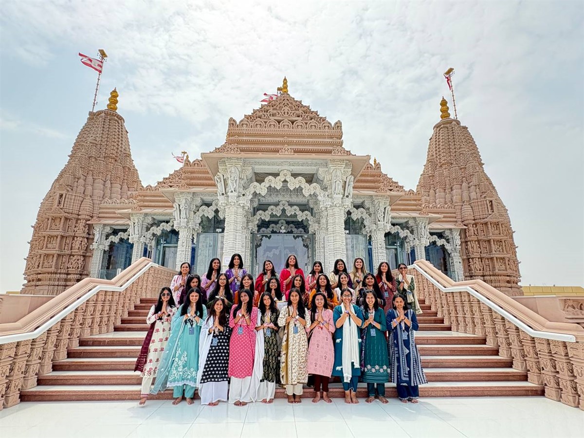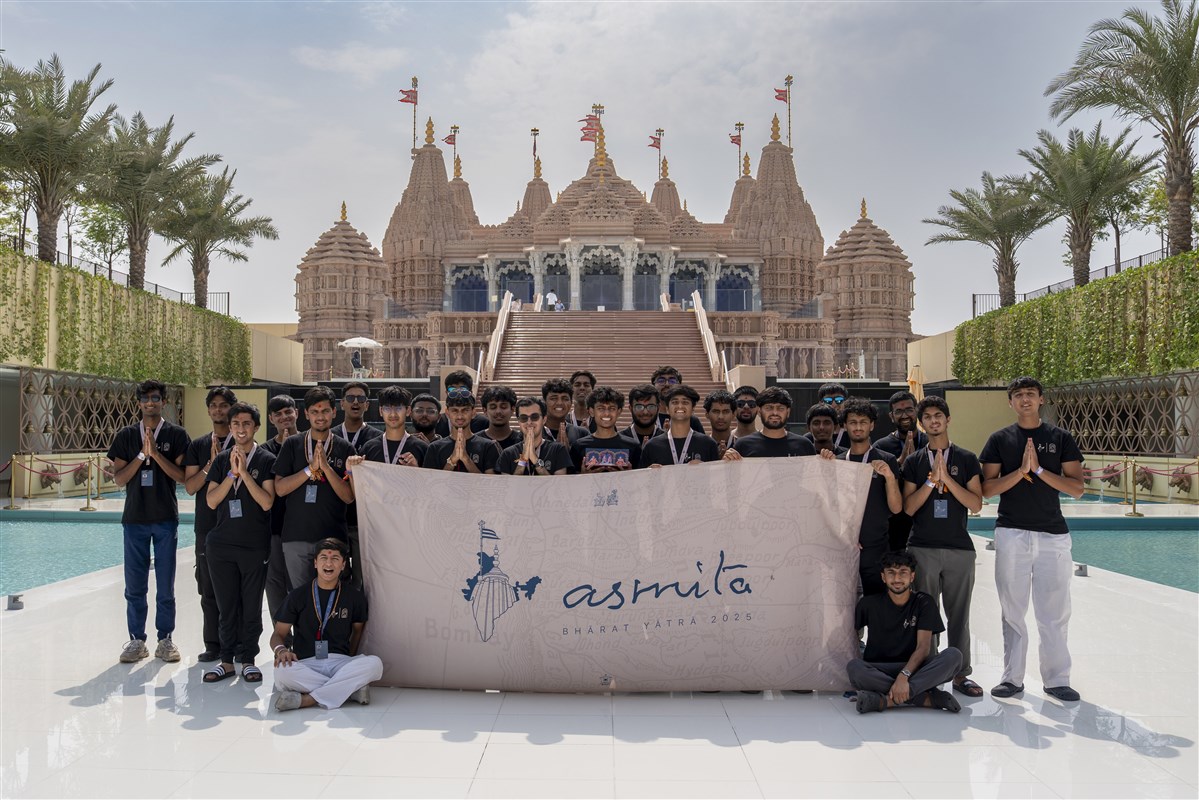 Group photo outside BAPS Hindu Mandir, Abu Dhabi