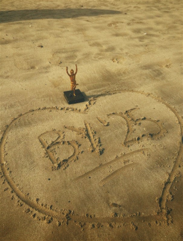 Delegates place the murti of Nilkanth Varni on a sandy beach in Abu Dhabi