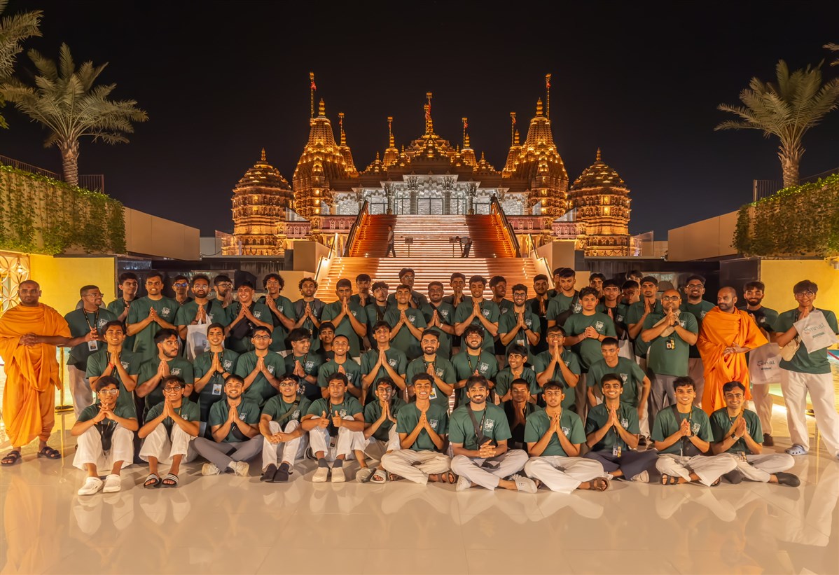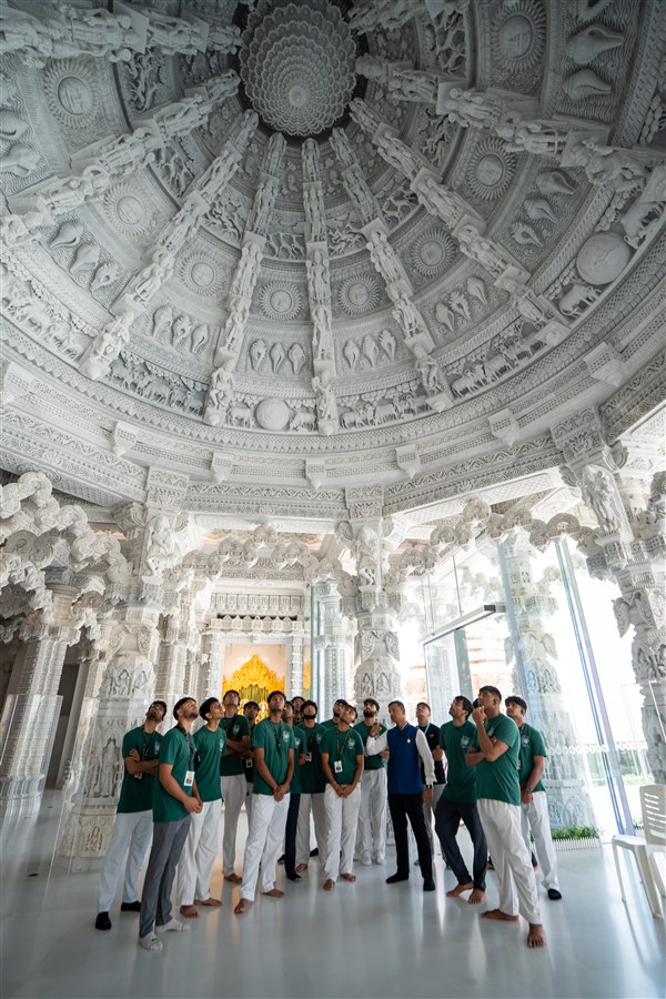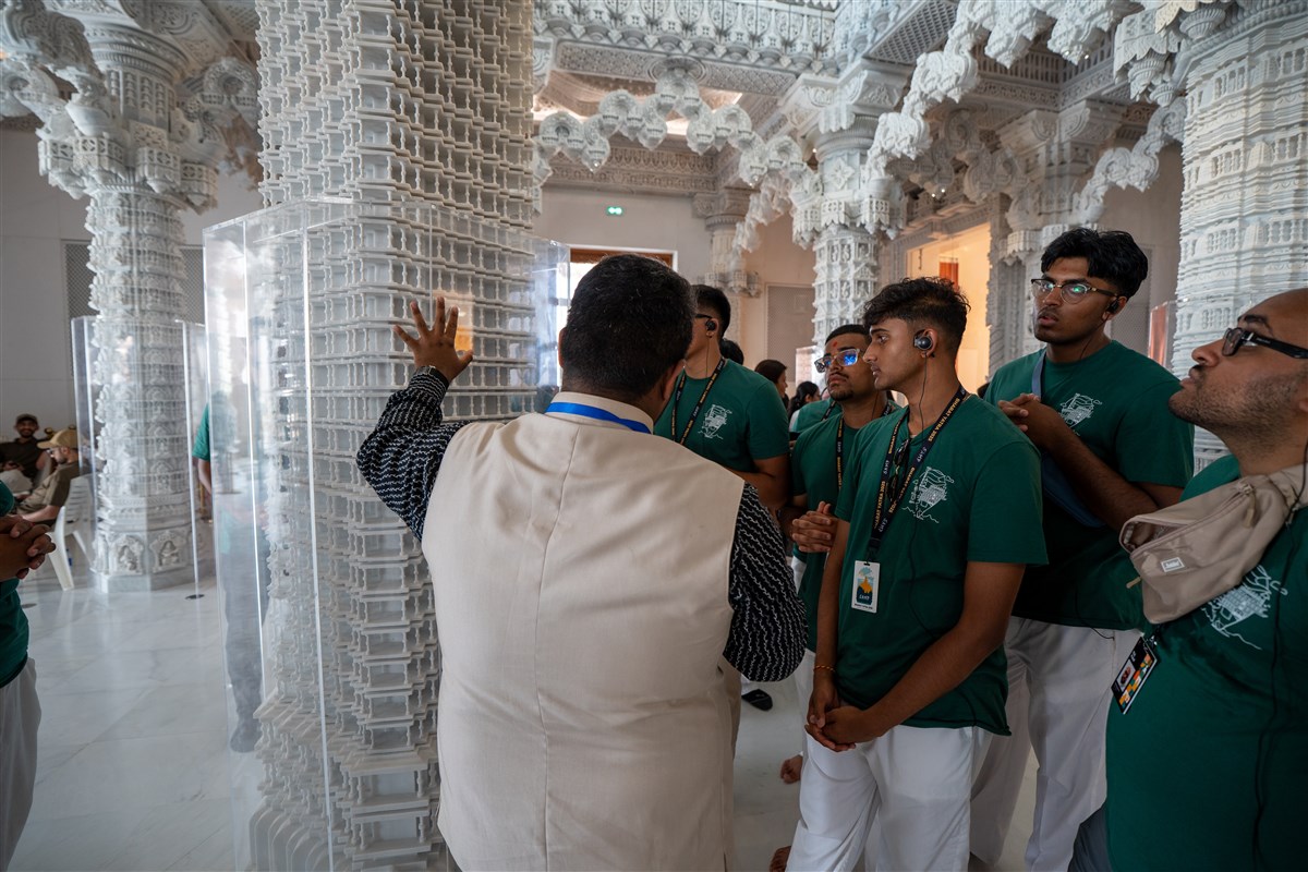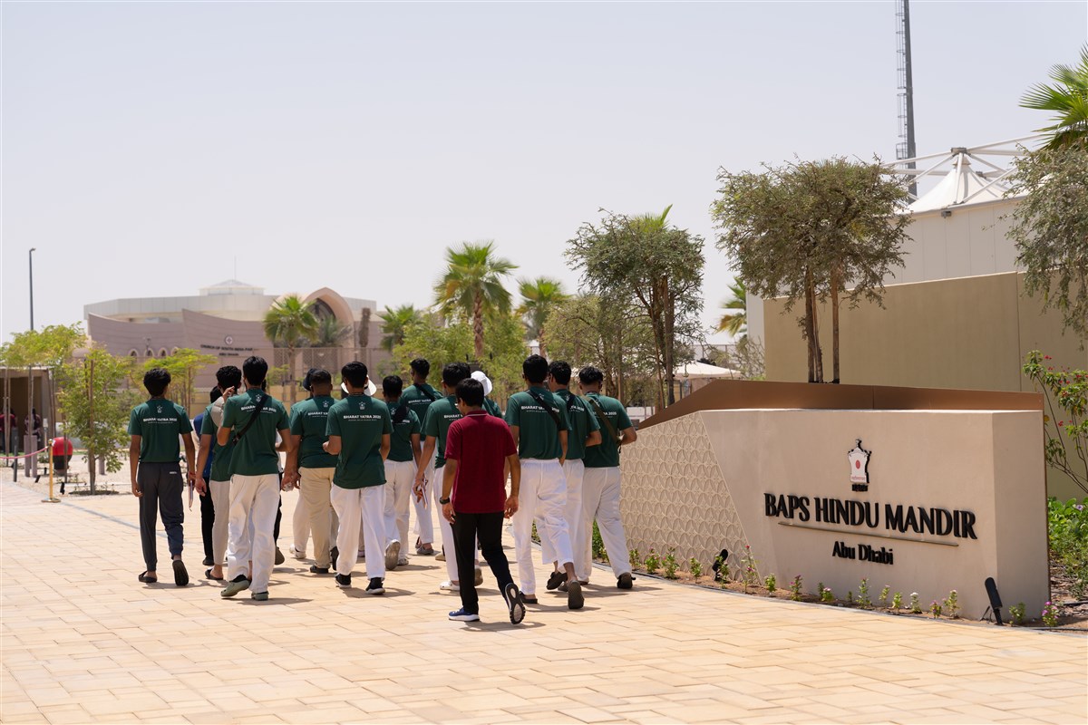 Delegates begin their tour of the BAPS Hindu Mandir in Abu Dhabi