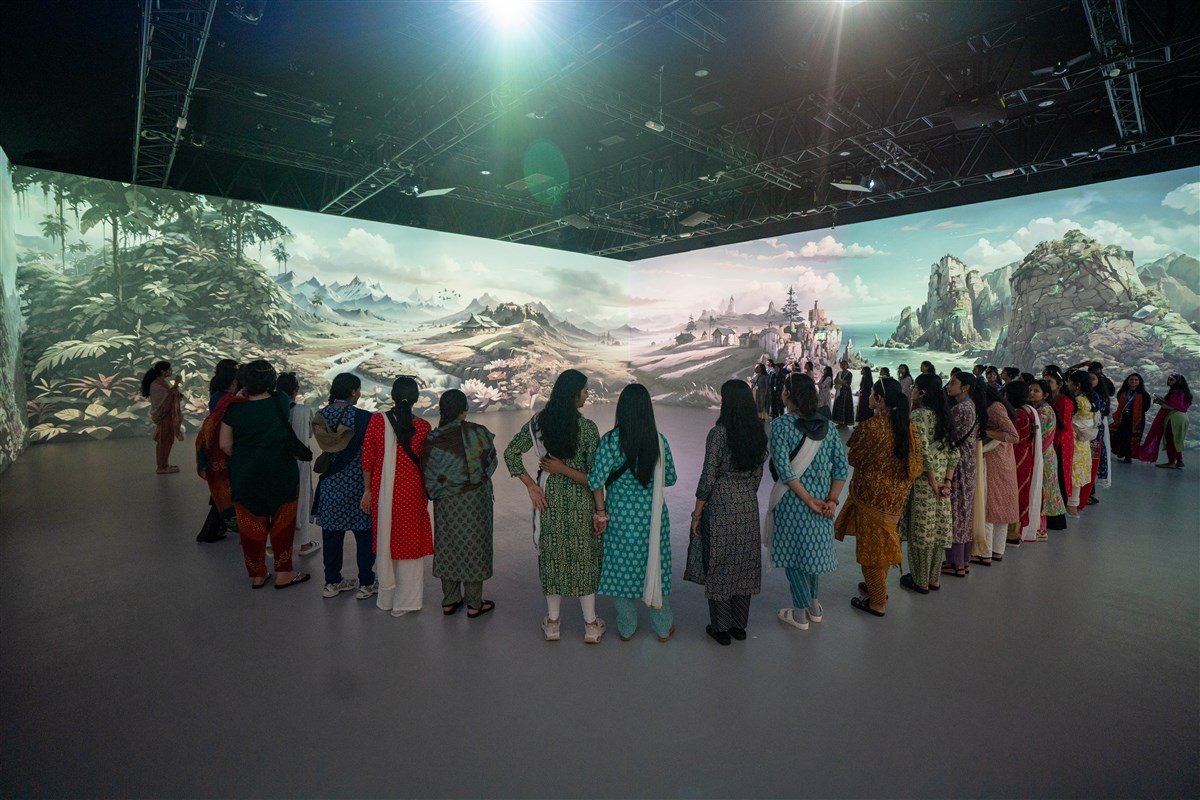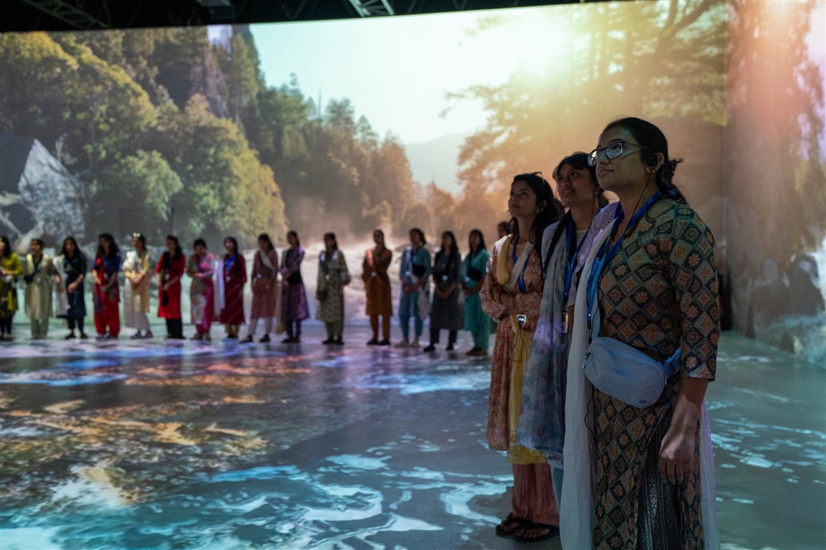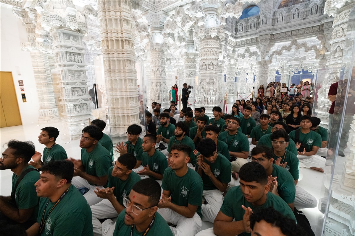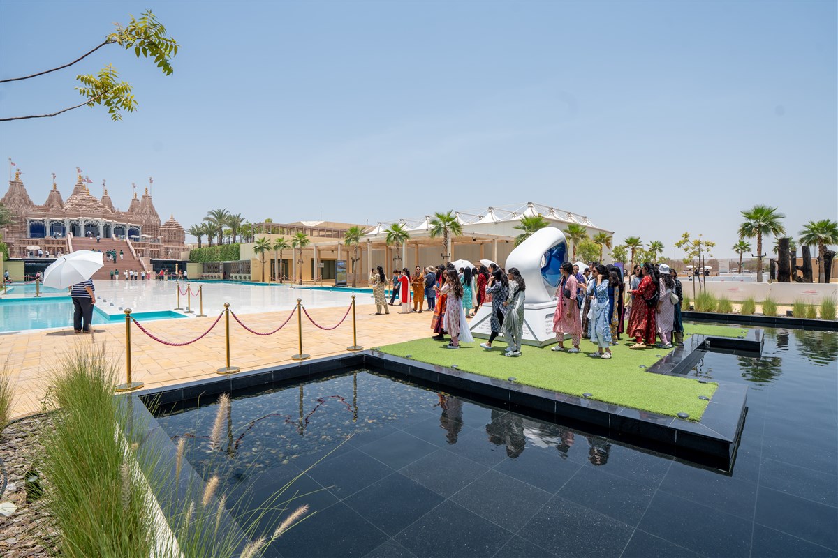 Delegates take in the views of the mandir through 'The Divine Eye'