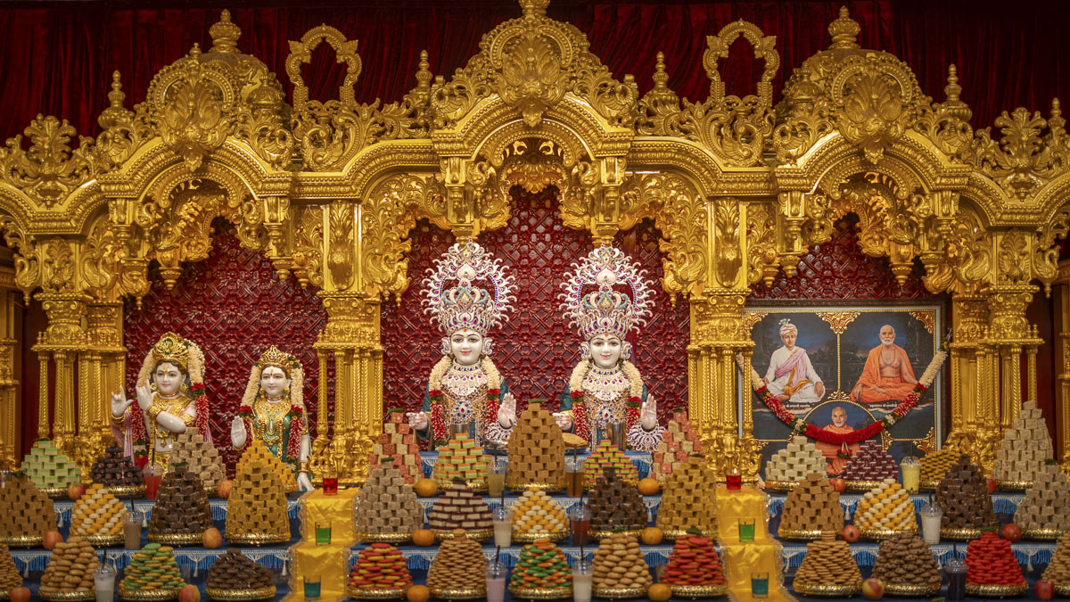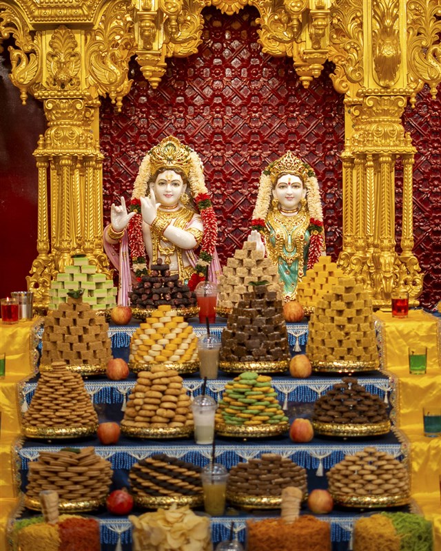 Annakut offered to Parabrahma Bhagwan Shri Swaminarayan and Aksharbrahma Shri Gunatitanand Swami