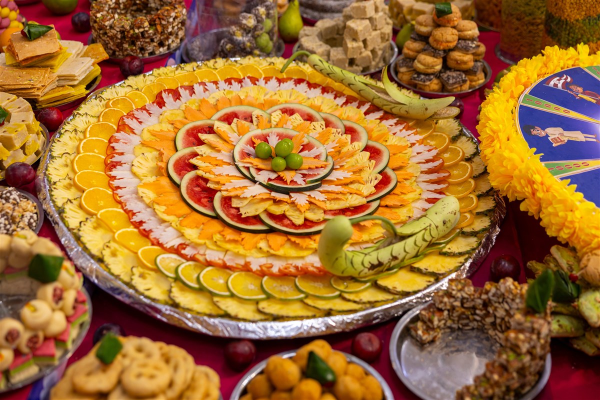 Annakut offered to Thakorji in the Akshar Deri