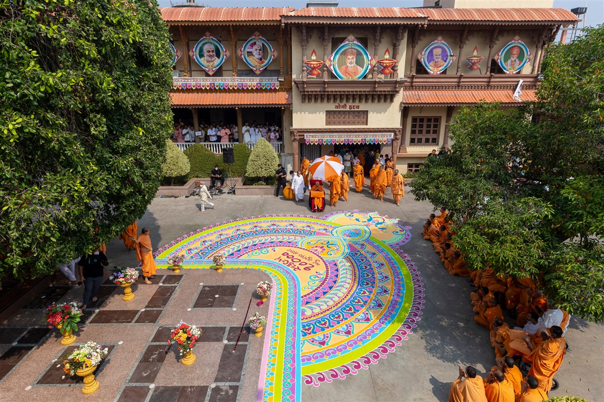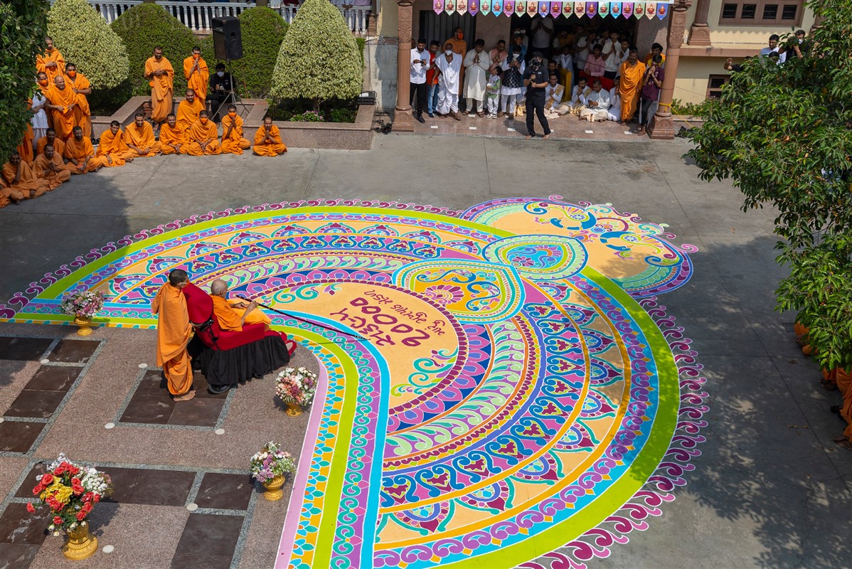 Swamishri observes the rangoli
