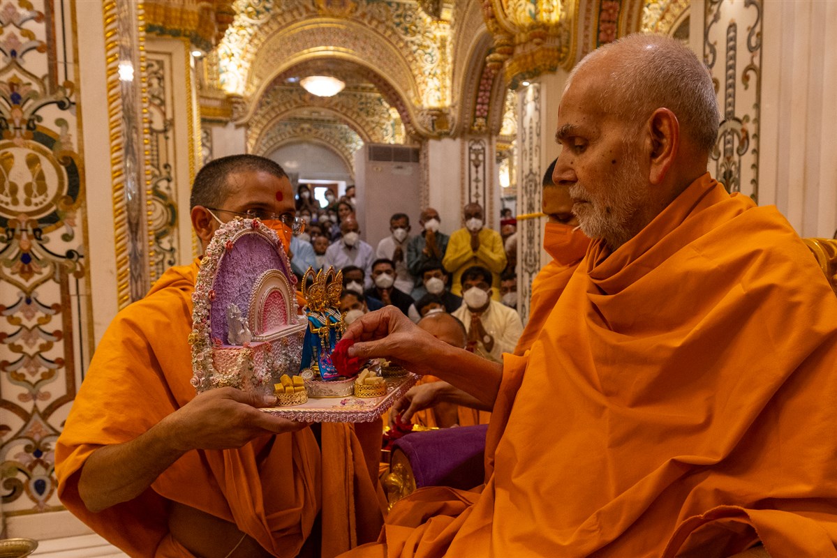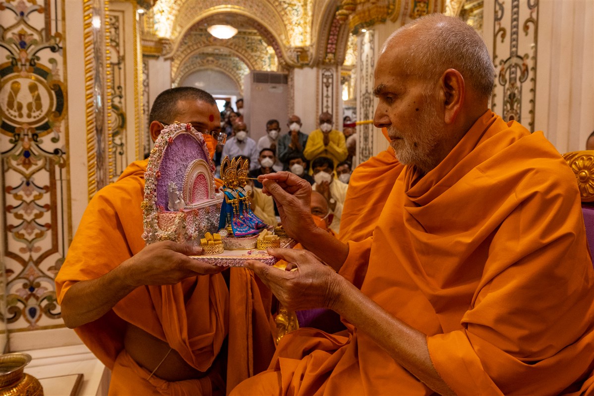 Swamishri performs puja of Shri Harikrishna Maharaj and Shri Gunatitanand Swami Maharaj