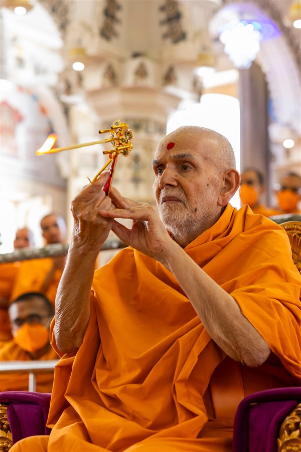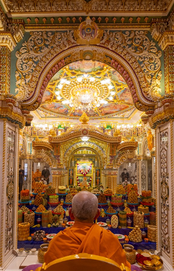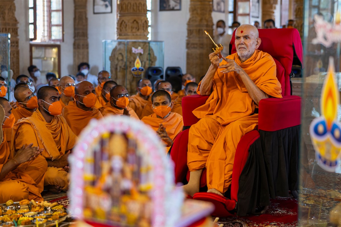 Swamishri performs the annakut arti