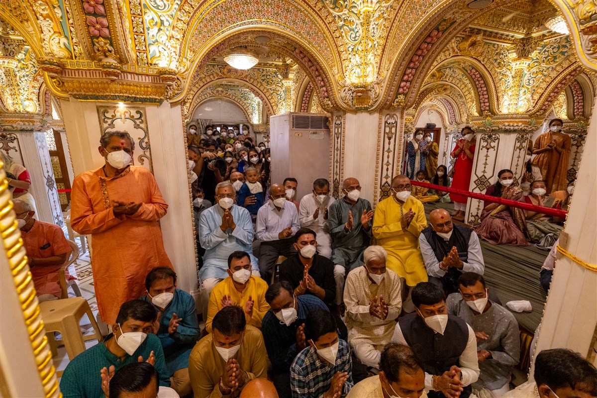 Devotees doing darshan of Swamishri
