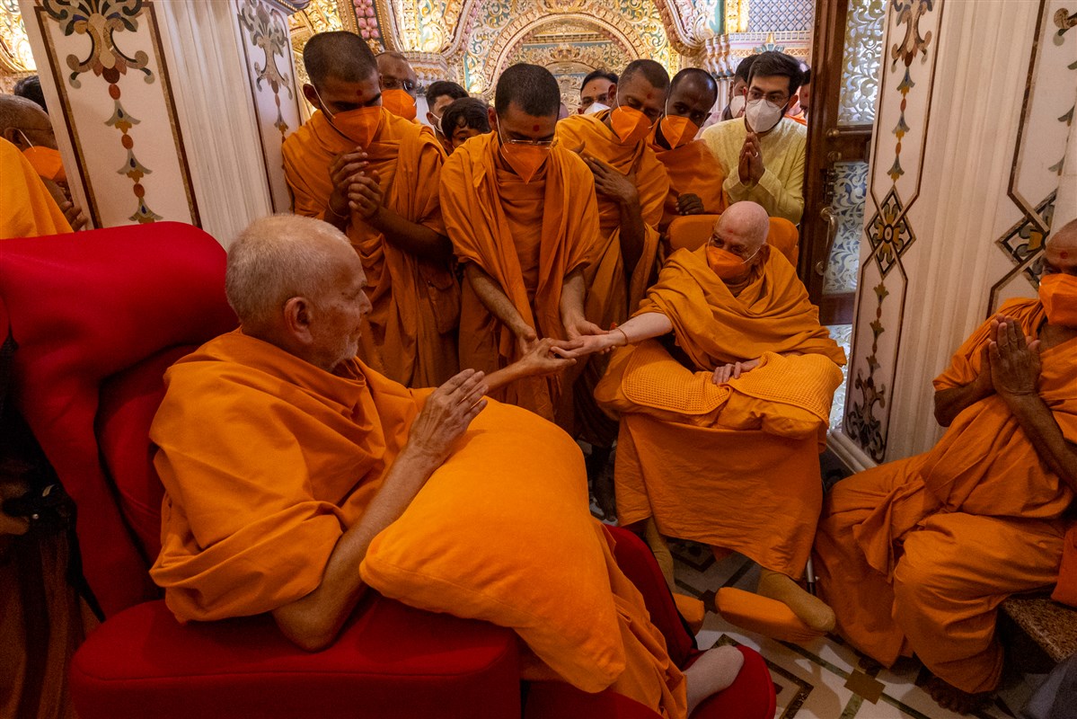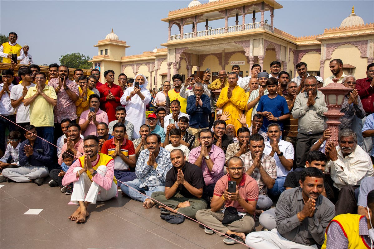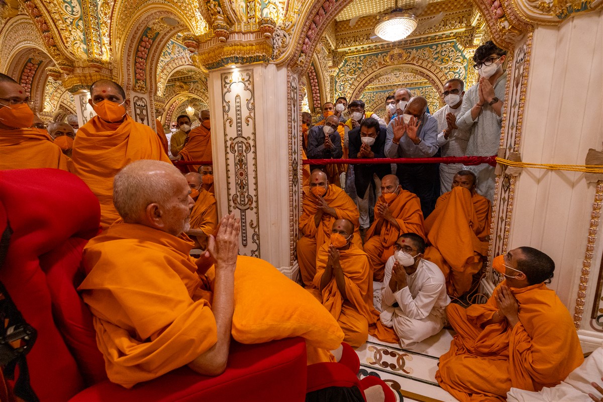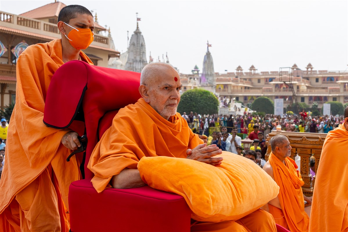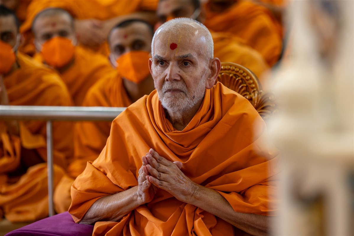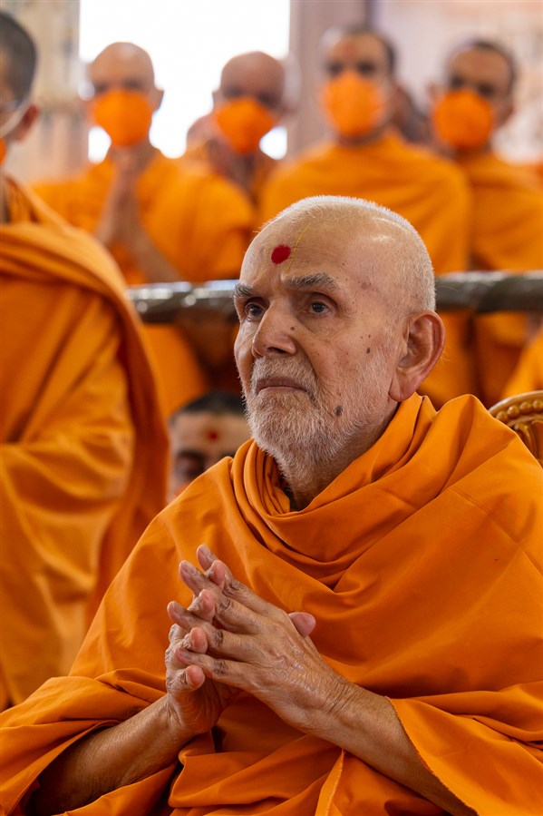 Swamishri greets all with folded hands