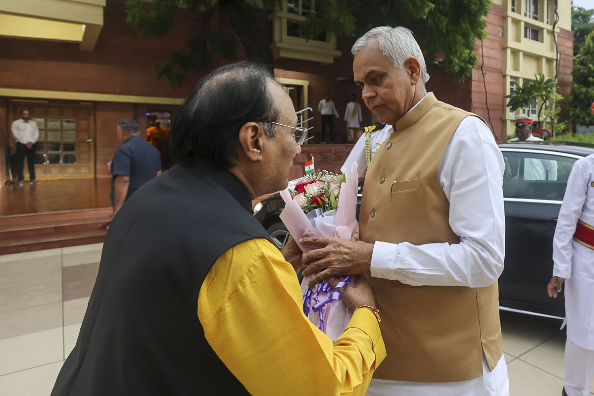 Dr. Suresh Rituparna welcomes Shri Acharya Devvratji, Hon. Governor of Gujarat and Maharashtra, with a bouquet