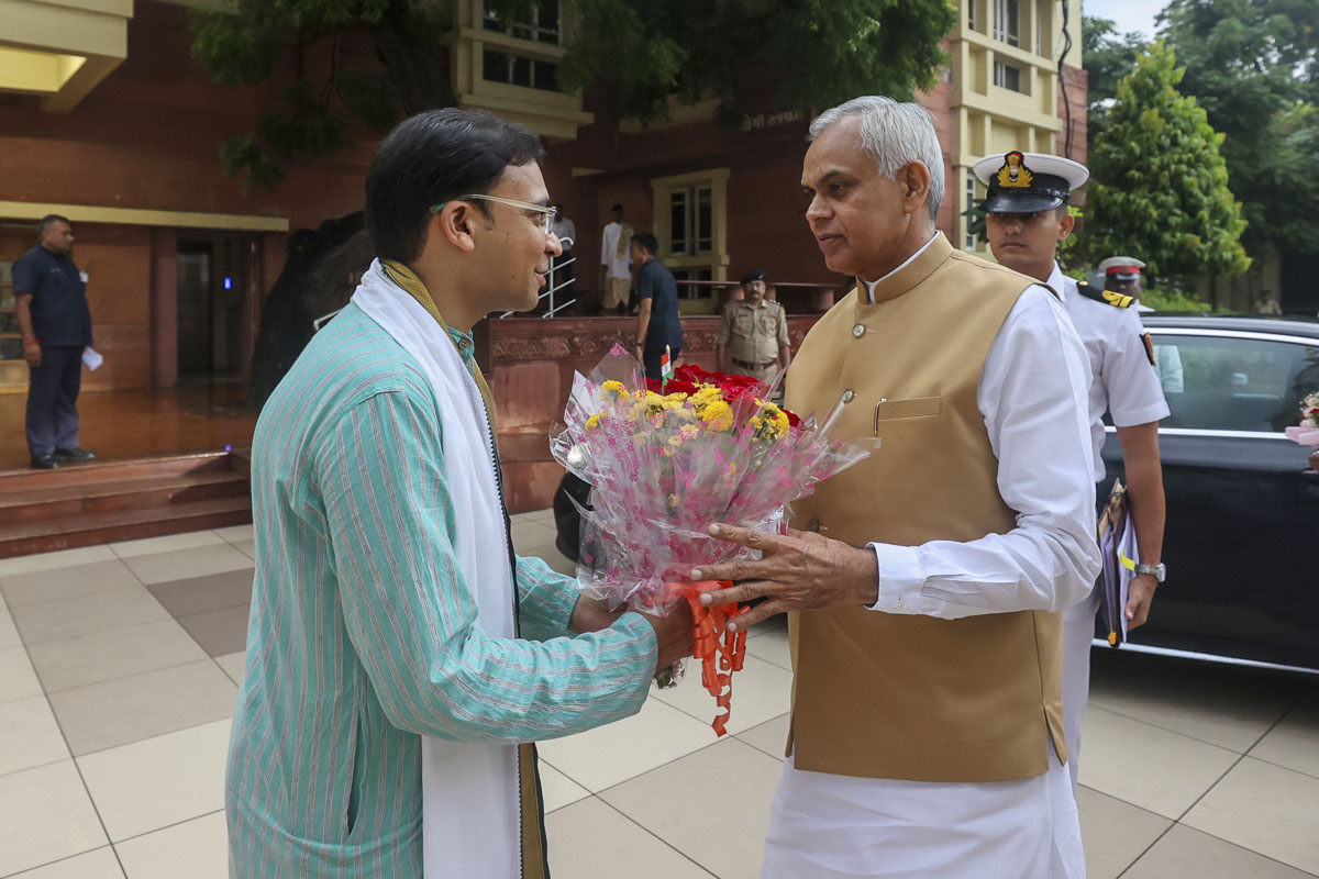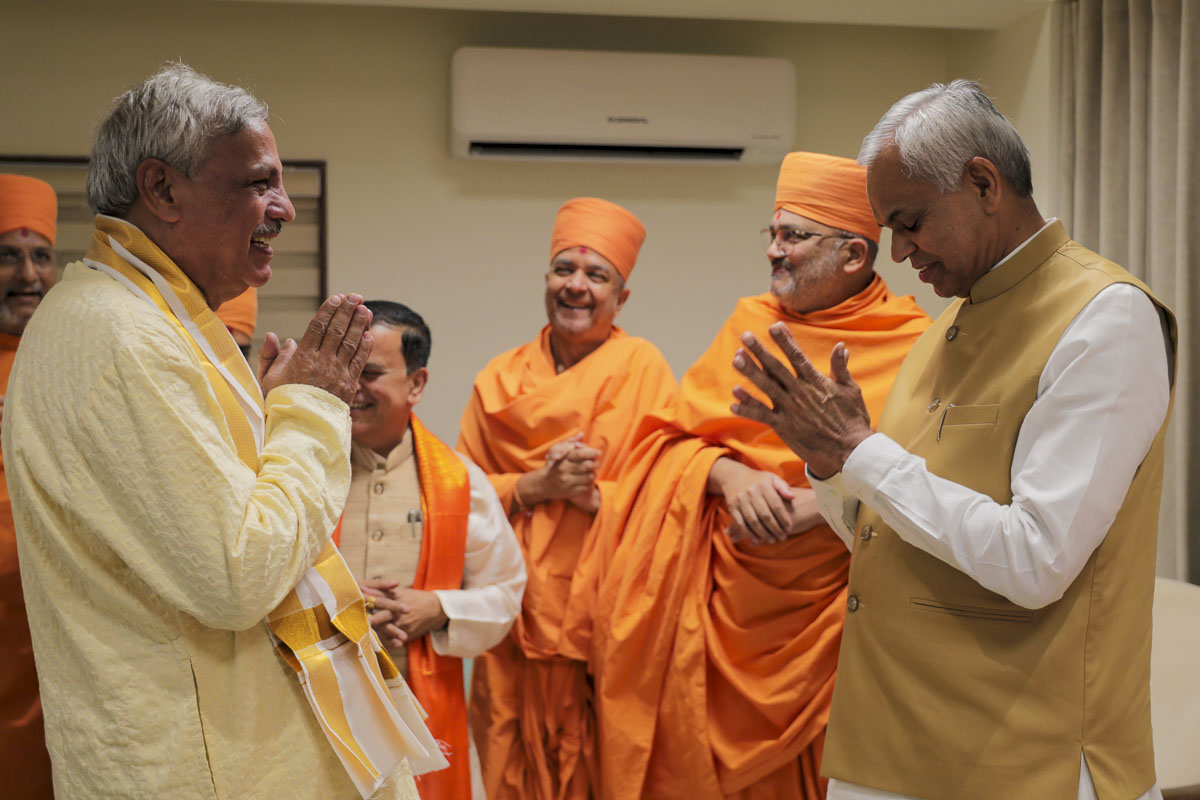 Prof. Dr. Niranjan Patel and Prof. Sukanta Kumar Senapati greets Shri Acharya Devvratji