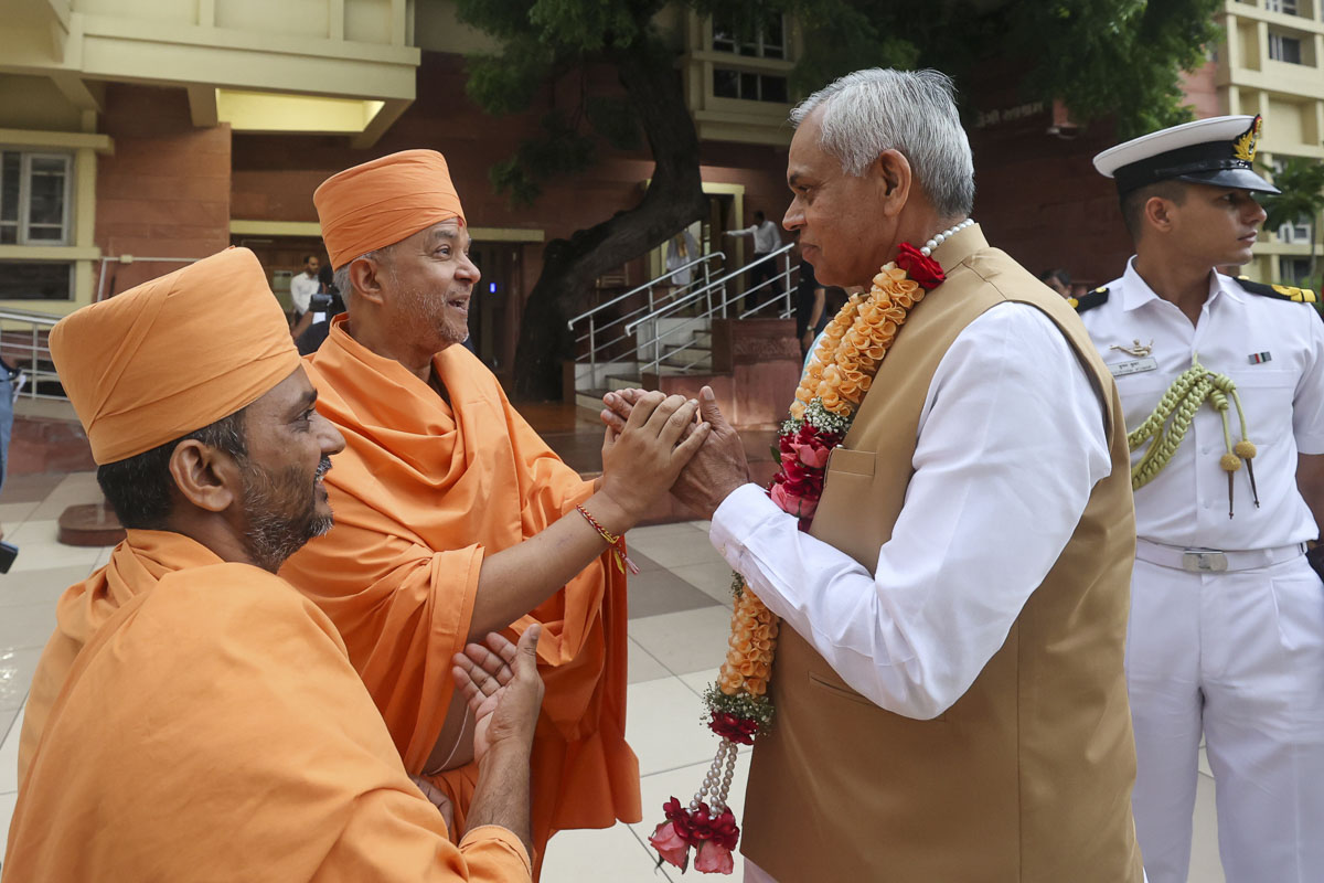 Brahmavihari Swami welcomes Shri Acharya Devvratji