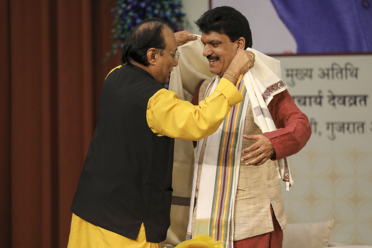 Dr. Suresh Rituparna honors Shri Acharya Devvratji with a shawl