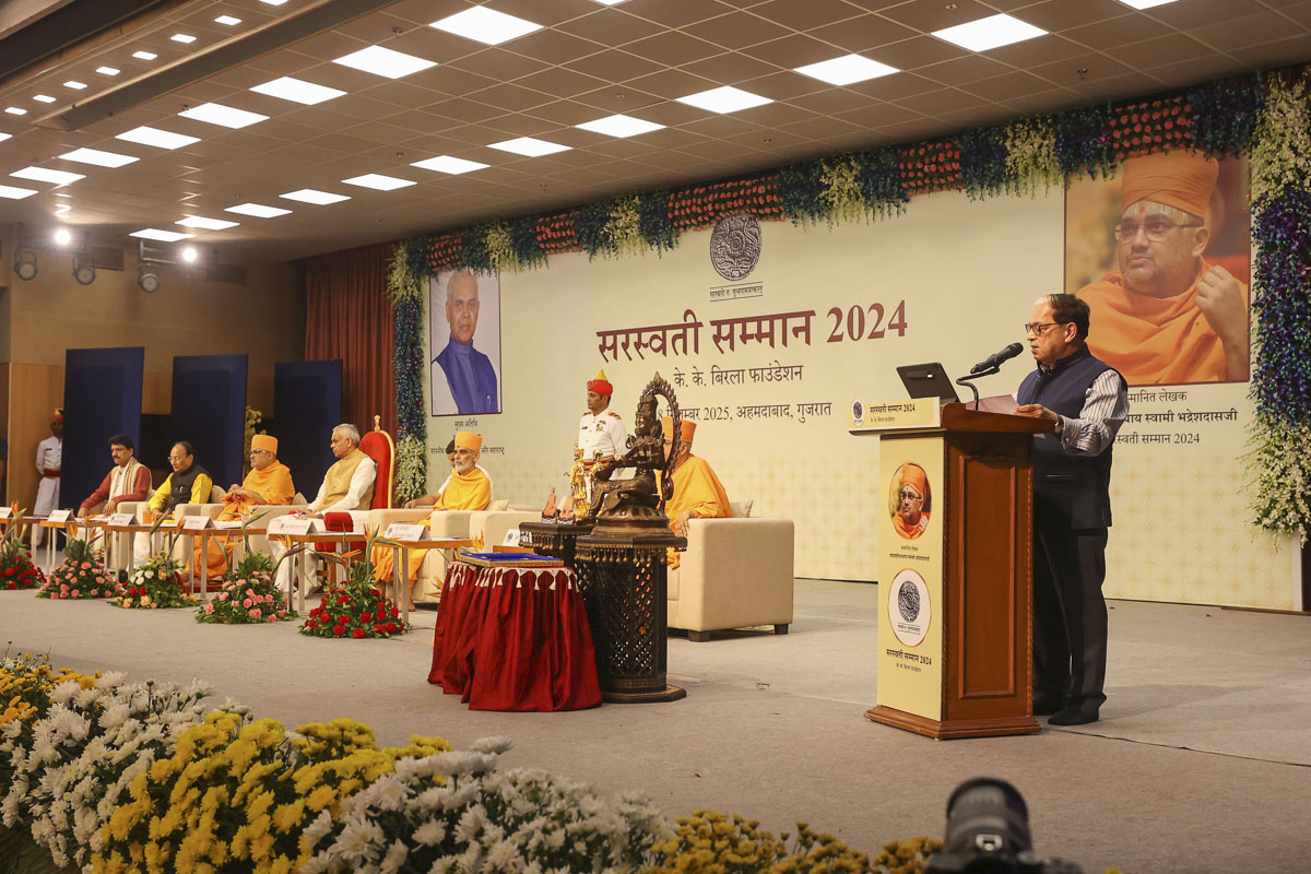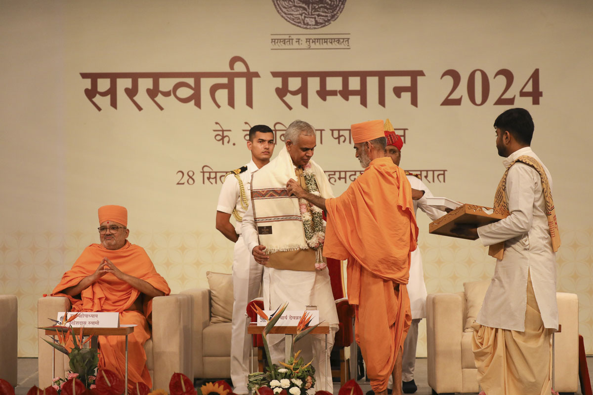 Mahamahopadhyaya Swami Bhadreshdasji Honored with the Prestigious National Saraswati Award for Literature, Ahmedabad, India