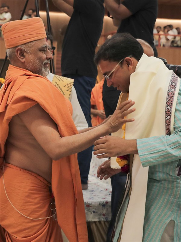 Dr. Suresh Rituparna honors Bhadresh Swami with a bouquet