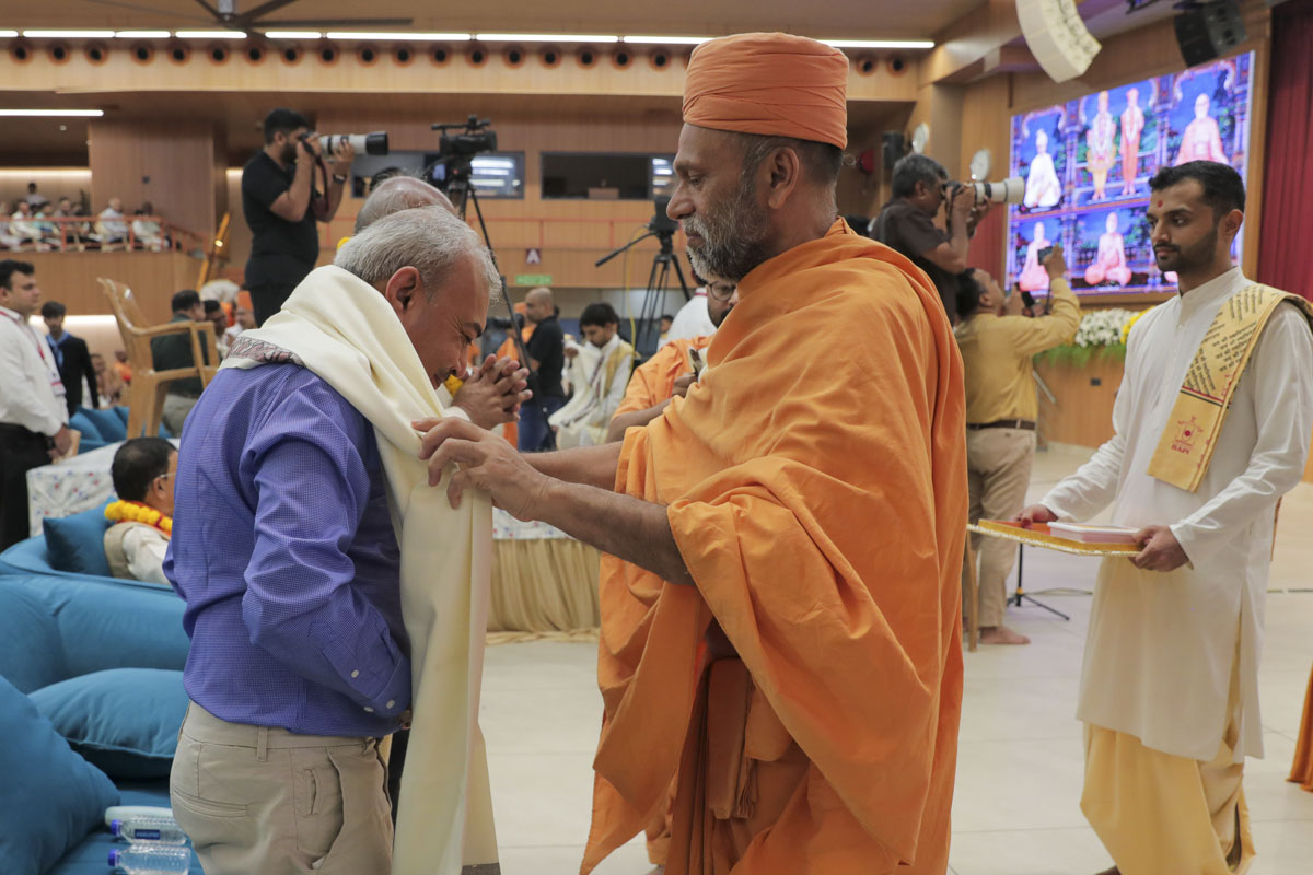 Dr. Suresh Rituparna honors Anandswarup Swami with a shawl