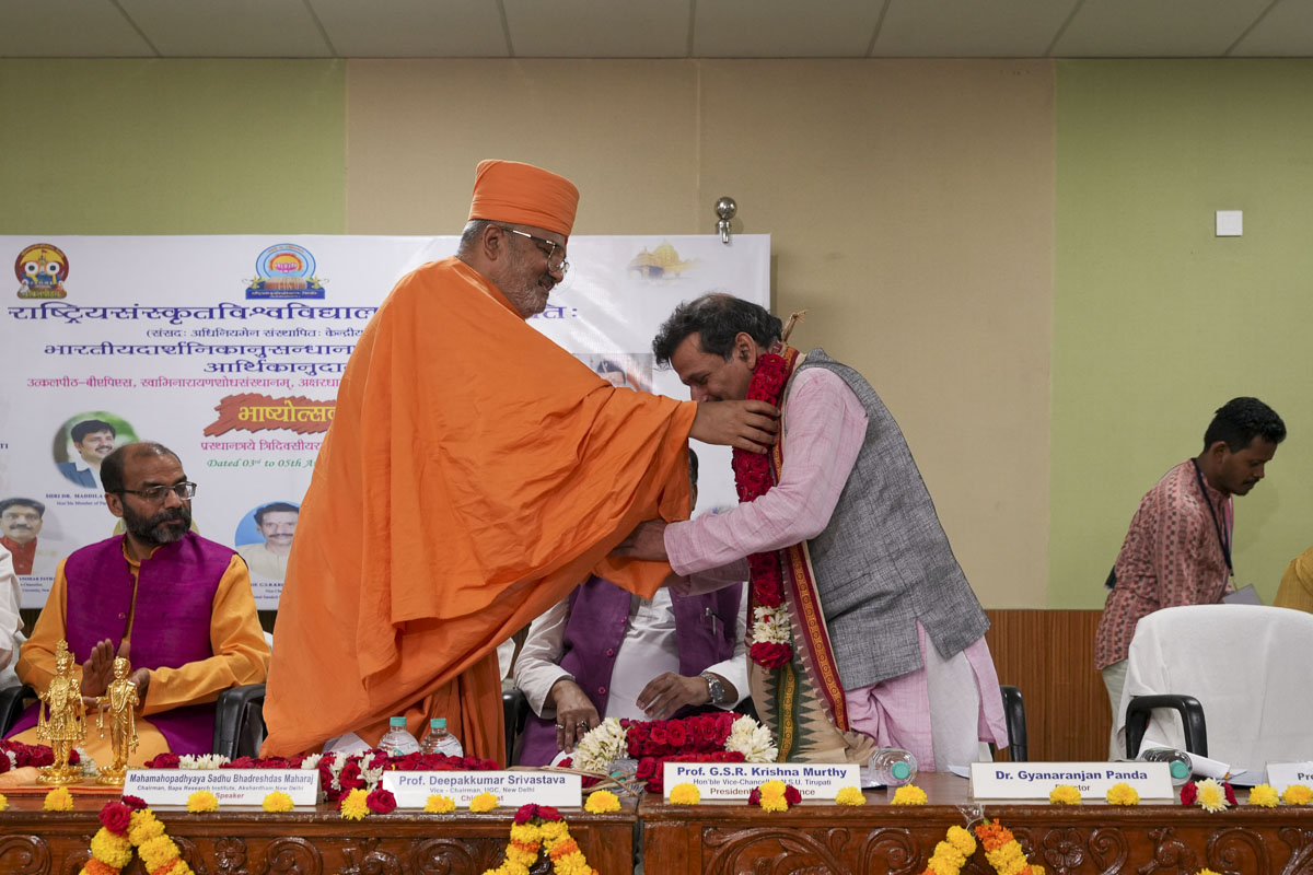 Mahamahopadhyay Pujya Bhadreshdas Swami honors Prof. G. S. R. Krishna Murthy, Vice-Chancellor of National Sanskrit University, Tirupati